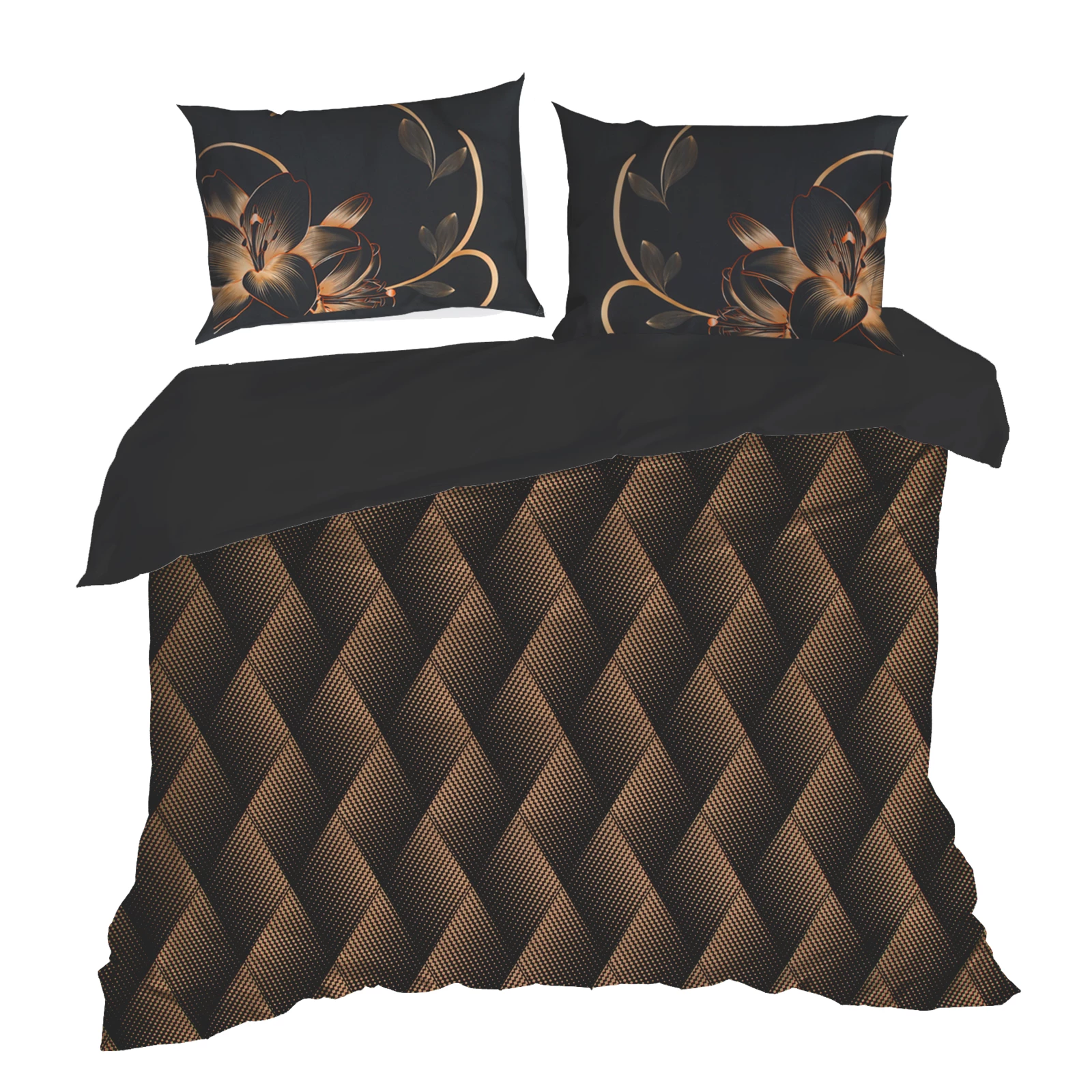 Komplet pościeli z makosatyny z nadrukiem szerokość: 160 cm, długość: 200 cm, kolor: czarny, Gramatura: 125 GSM, Skład: makosatyna, 100% bawełna
