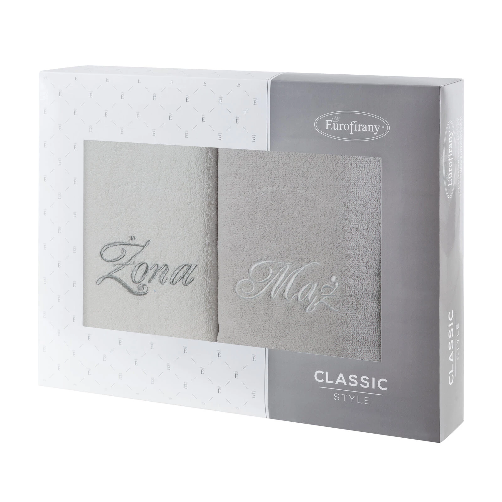 Komplet dwóch ręczników z haftem szerokość: 47 cm, długość: 37 cm, kolor: biały, Gramatura: 400 GSM, Skład: 100% bawełna
