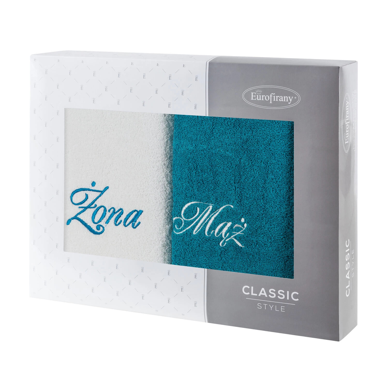 Komplet dwóch ręczników z haftem szerokość: 46 cm, długość: 36 cm, kolor: biały, Gramatura: 400 GSM, Skład: 100% bawełna