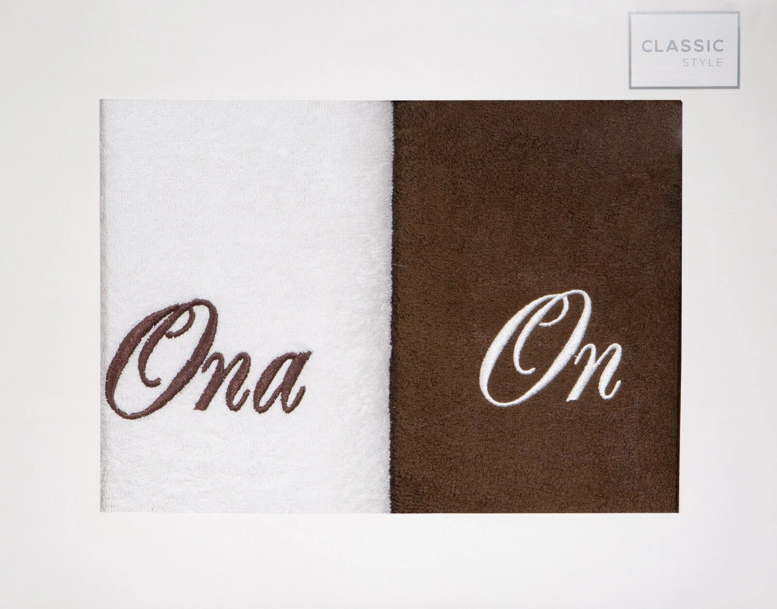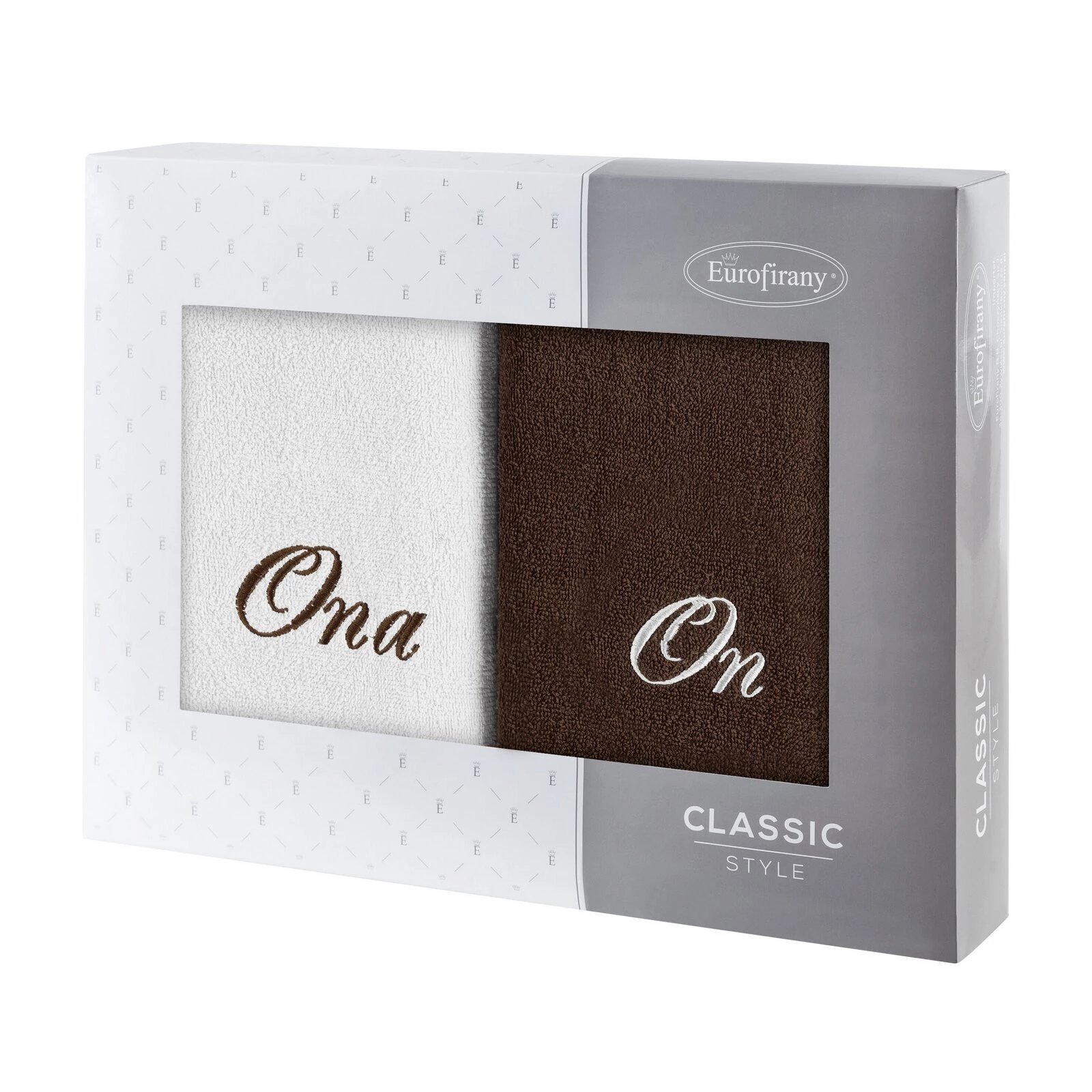 Komplet dwóch ręczników z haftem szerokość: 47 cm, długość: 37 cm, kolor: kremowy, Gramatura: 400 GSM, Skład: 100% bawełna