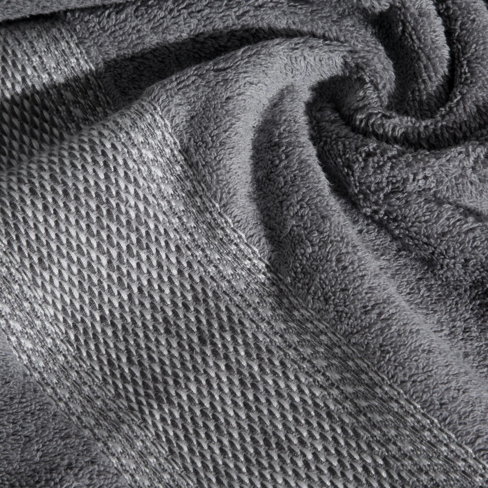 Komplet ręczników z melanżową bordiurą kolor: stalowy, Gramatura: 500 GSM, Skład: 100% bawełna; część ozdobna: 80% poliester, 20% bawełna