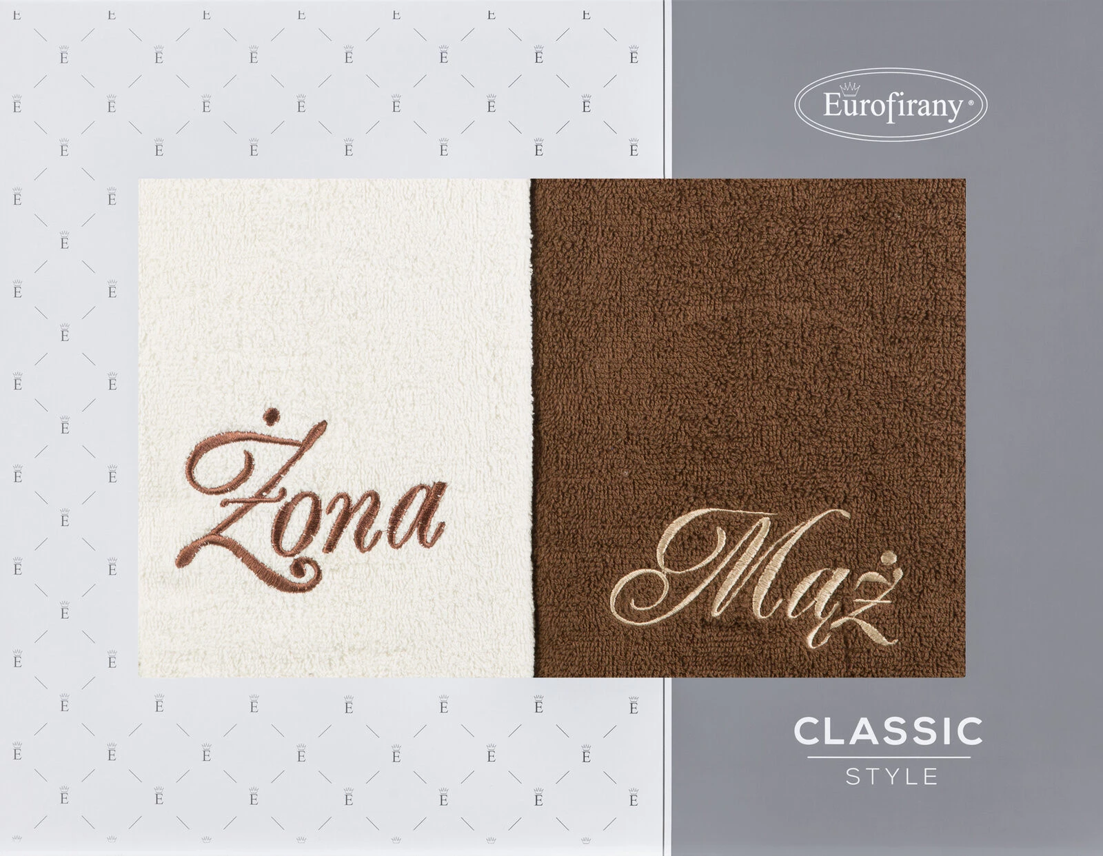 Komplet dwóch ręczników z haftem szerokość: 2 szt. 70 cm, długość: 140 cm, kolor: kremowy, Gramatura: 400 GSM, Skład: 100% bawełna