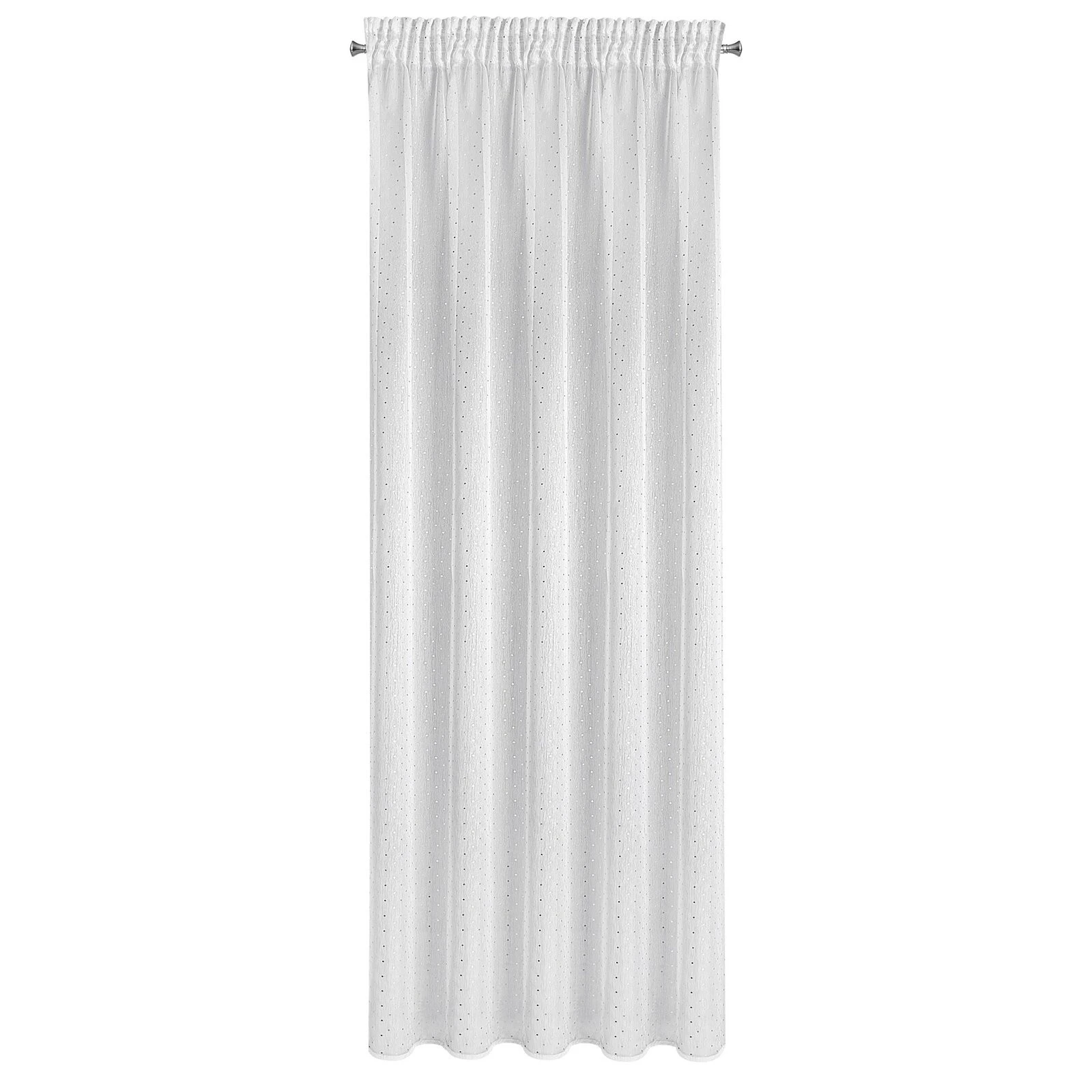 Miękka firana z nieprzejrzystej tkaniny dekorowanej drobnym nadrukiem srebrnych rombów. Doskonale rozprasza światło. Wymaga prasowania po lewej stronie. szerokość: 140 cm, długość: 270 cm, kolor: biały, Gramatura: 50 GSM, Skład: 100% poliester