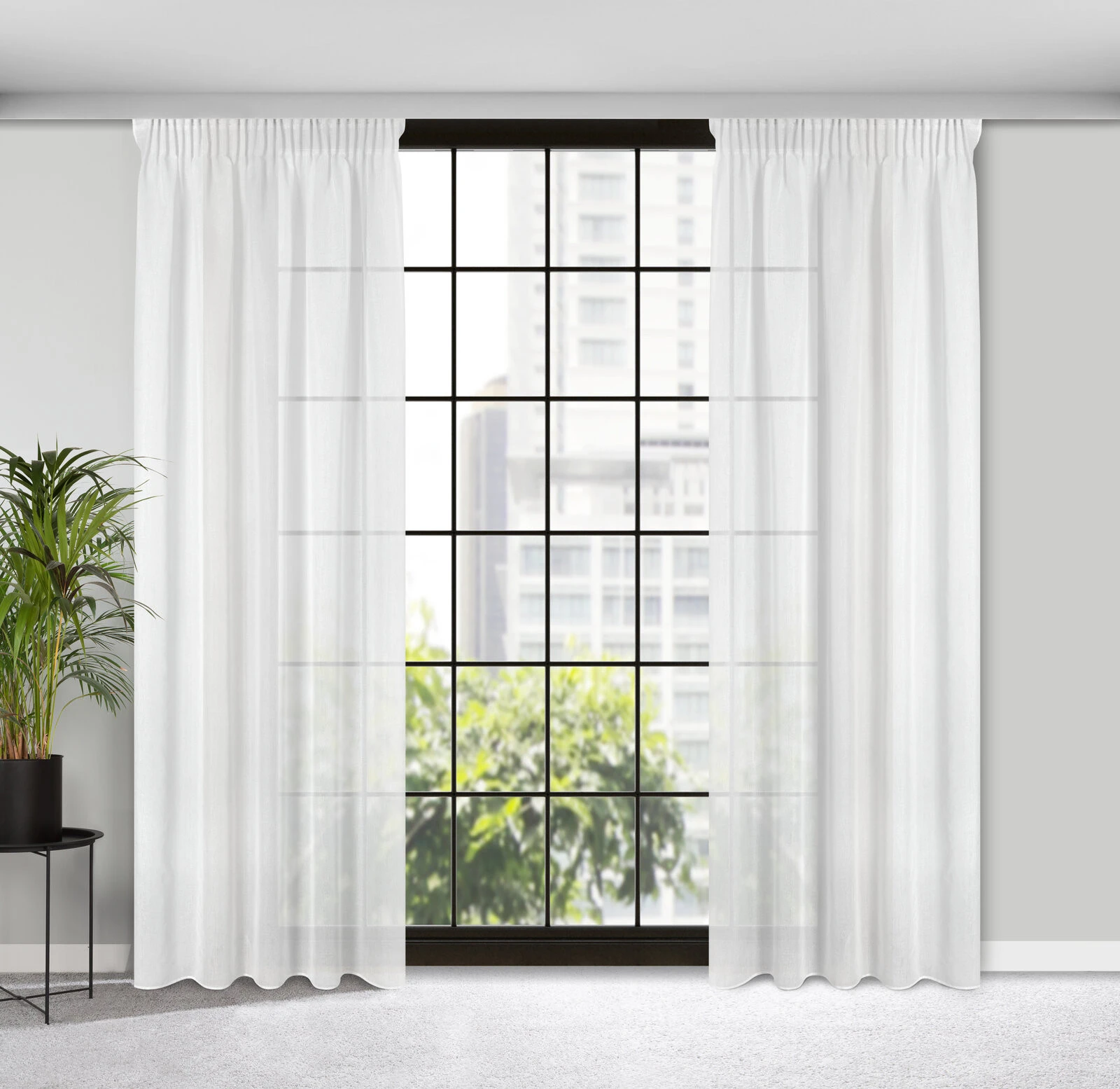 - Firana gotowa z połyskiem szerokość: 140 cm, długość: 270 cm, kolor: biały, Gramatura: 75 GSM, Skład: 100% poliester