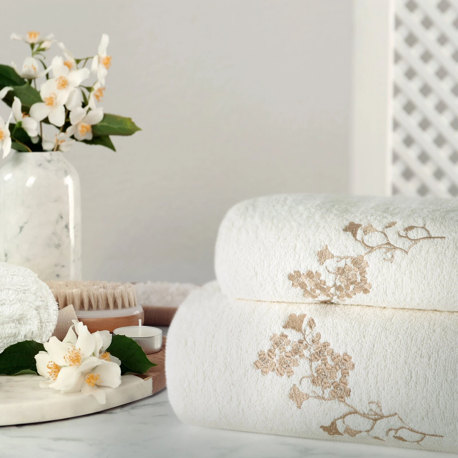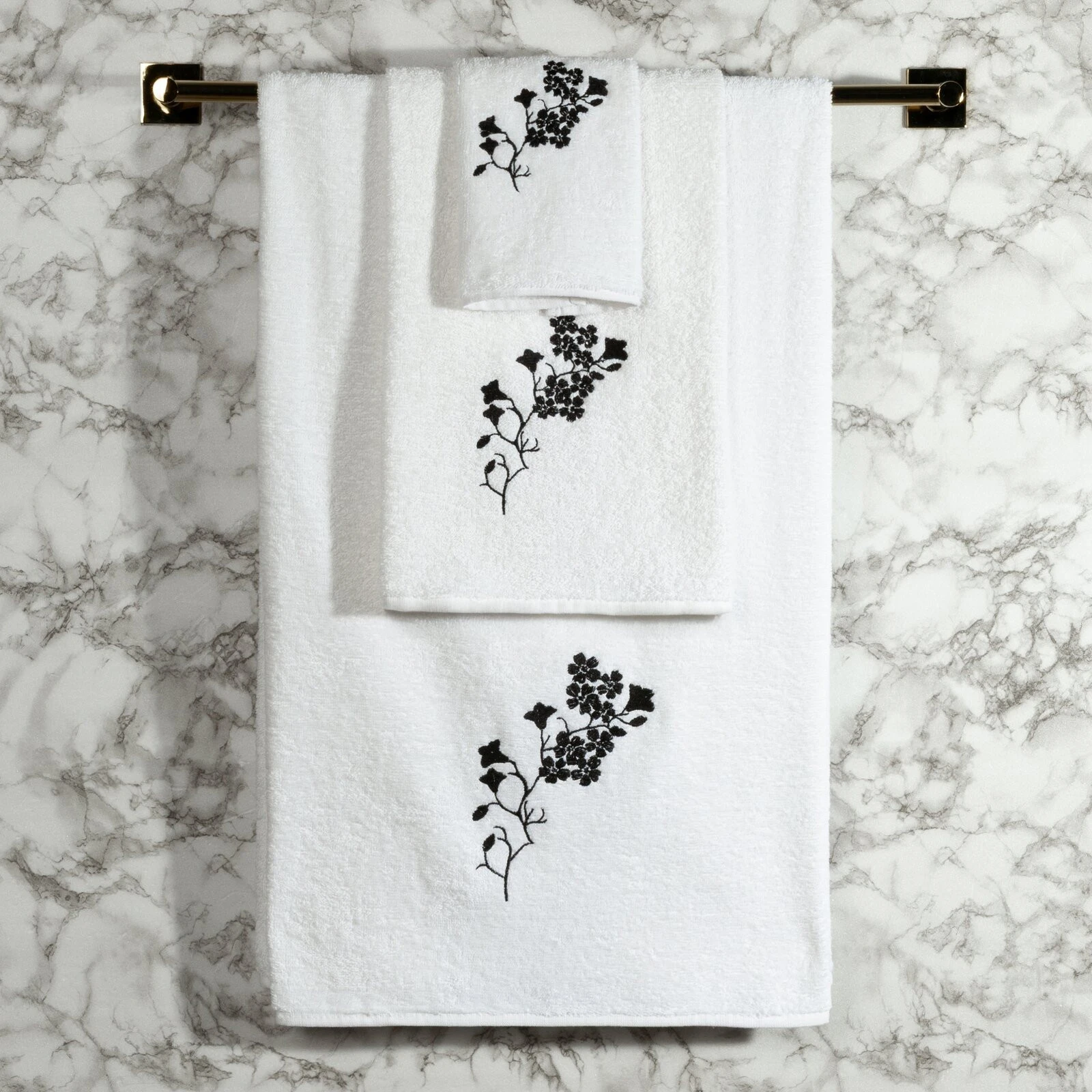 Komplet ręczników z haftem szerokość: 56 cm, długość: 36 cm, kolor: biały, Gramatura: 380 GSM, Skład: 100% bawełna