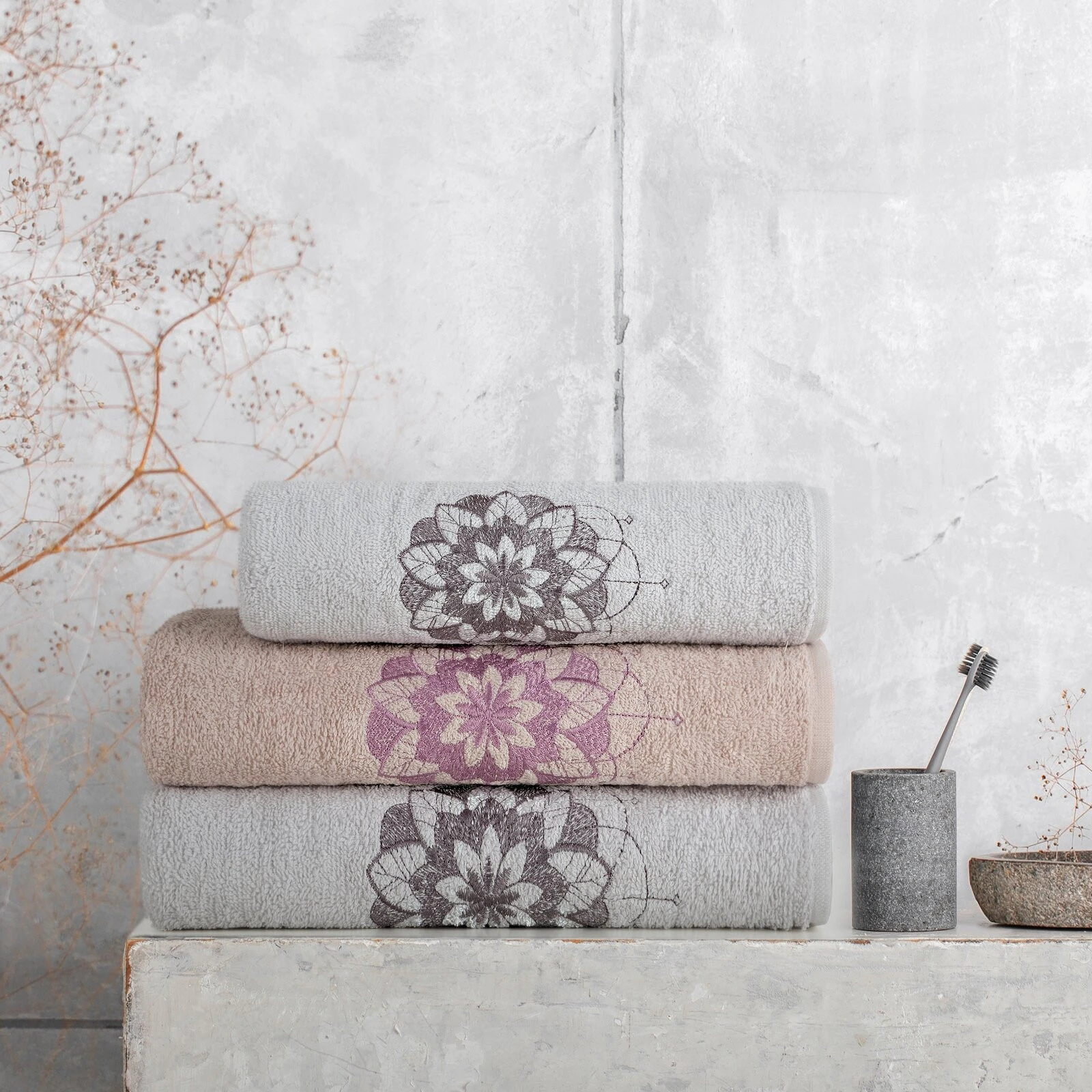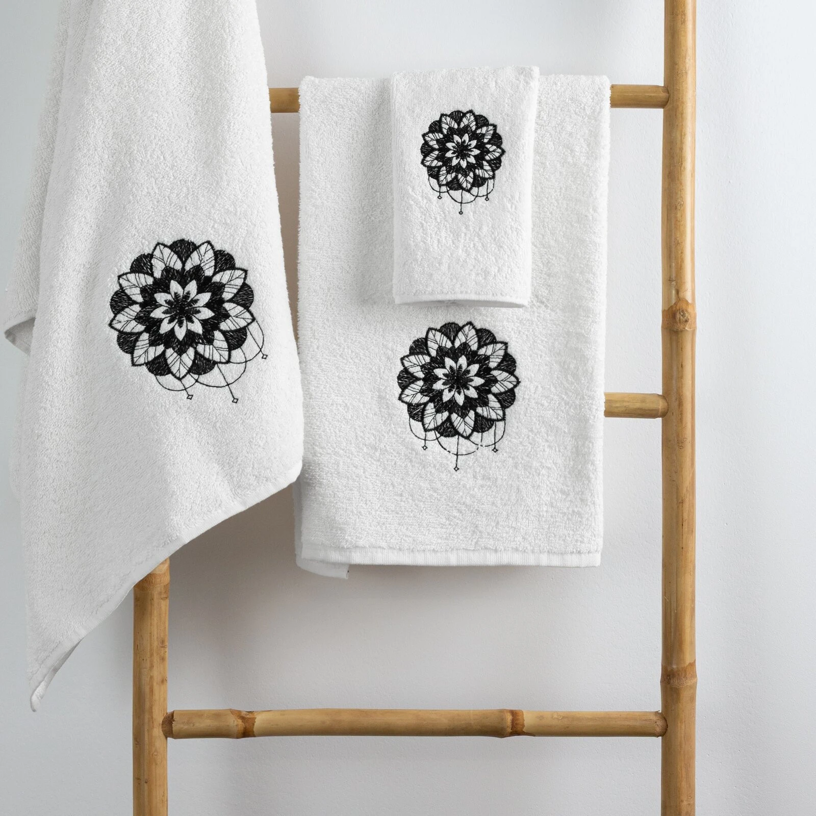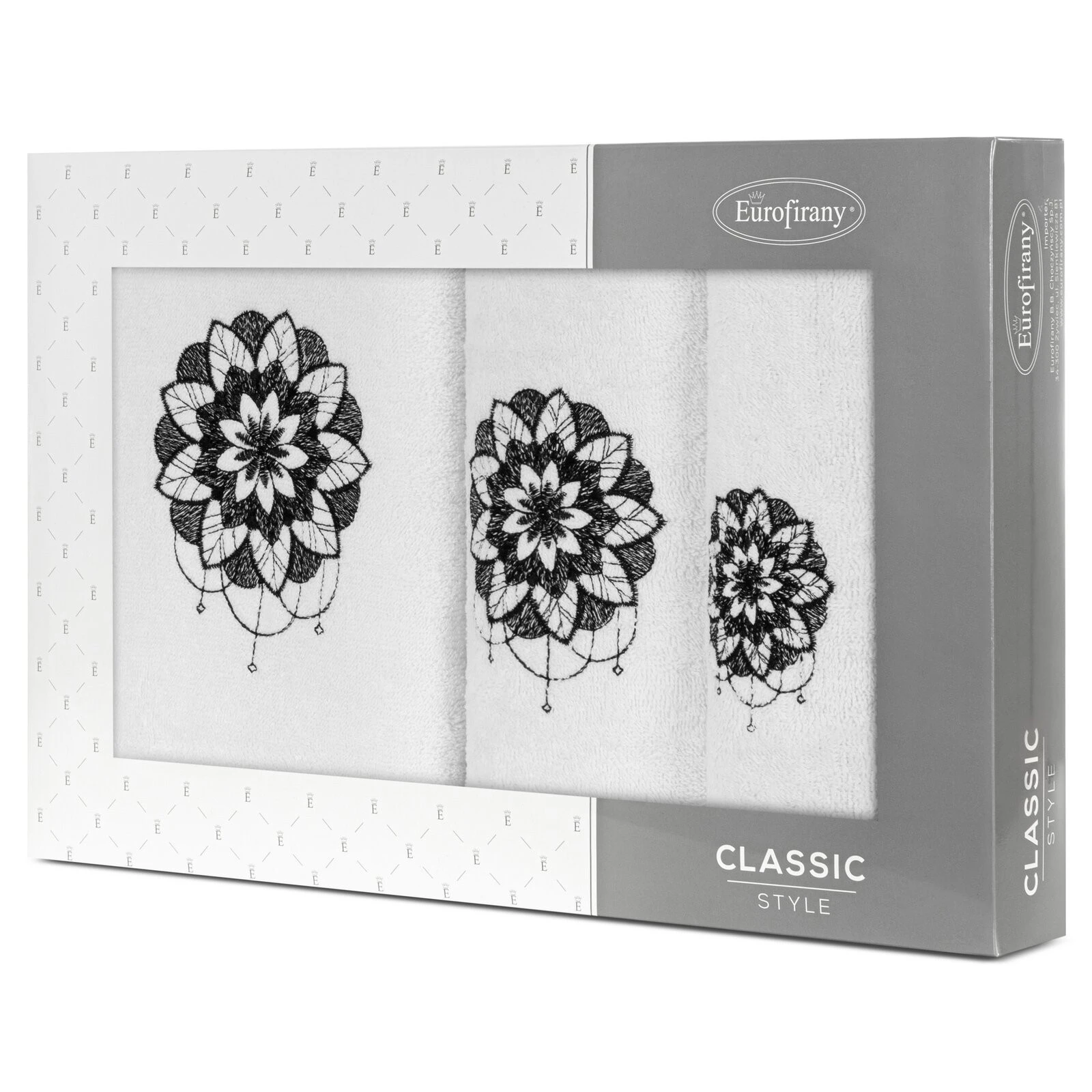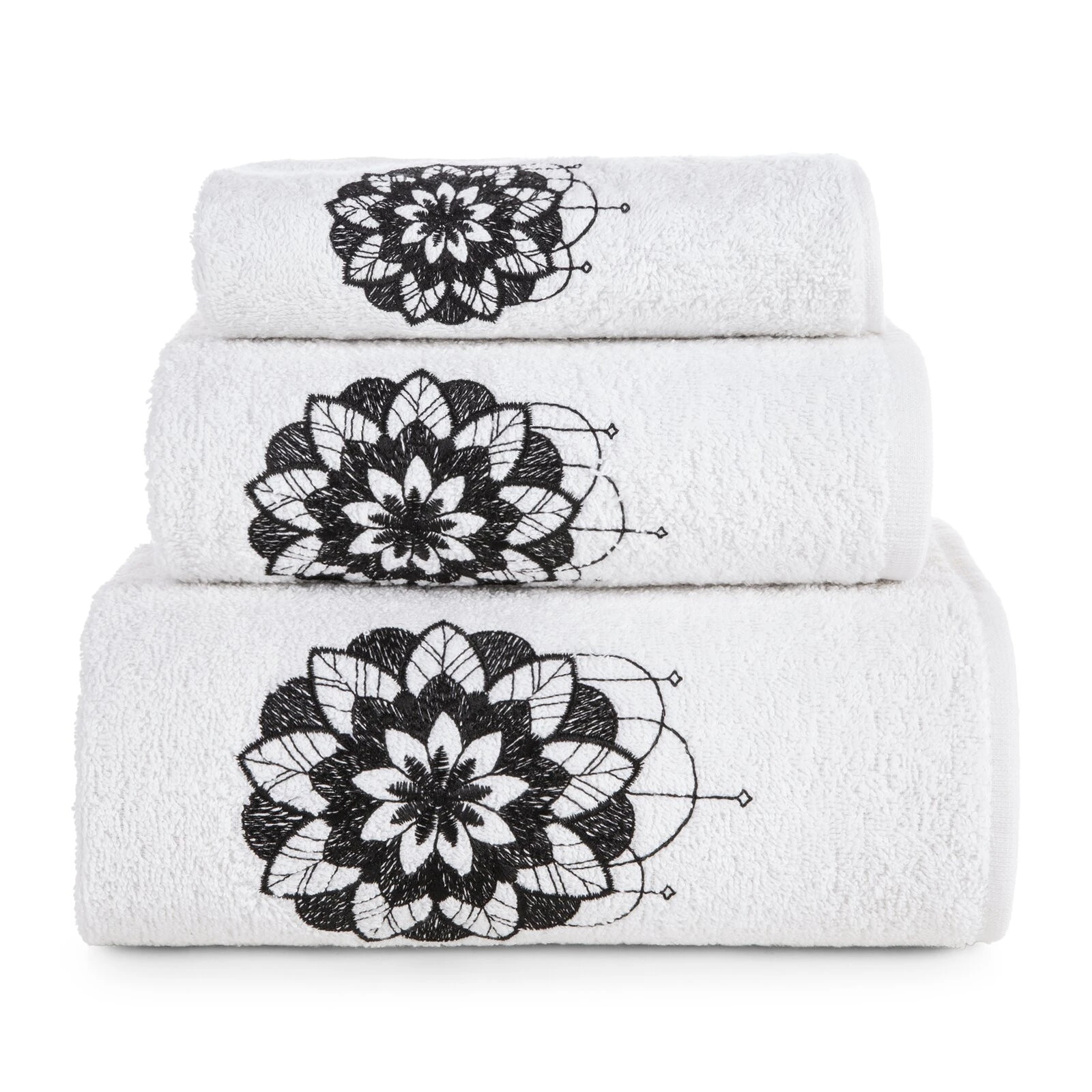 Komplet ręczników z haftem szerokość: 56 cm, długość: 36 cm, kolor: biały, Gramatura: 380 GSM, Skład: 100% bawełna