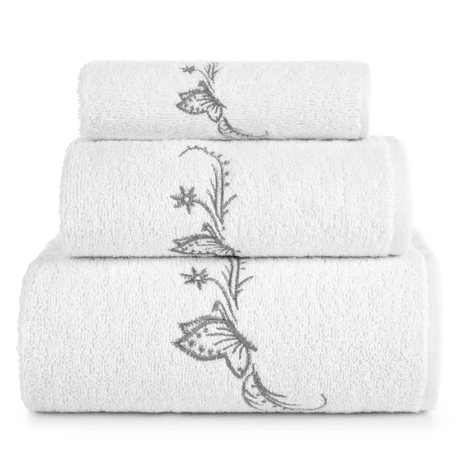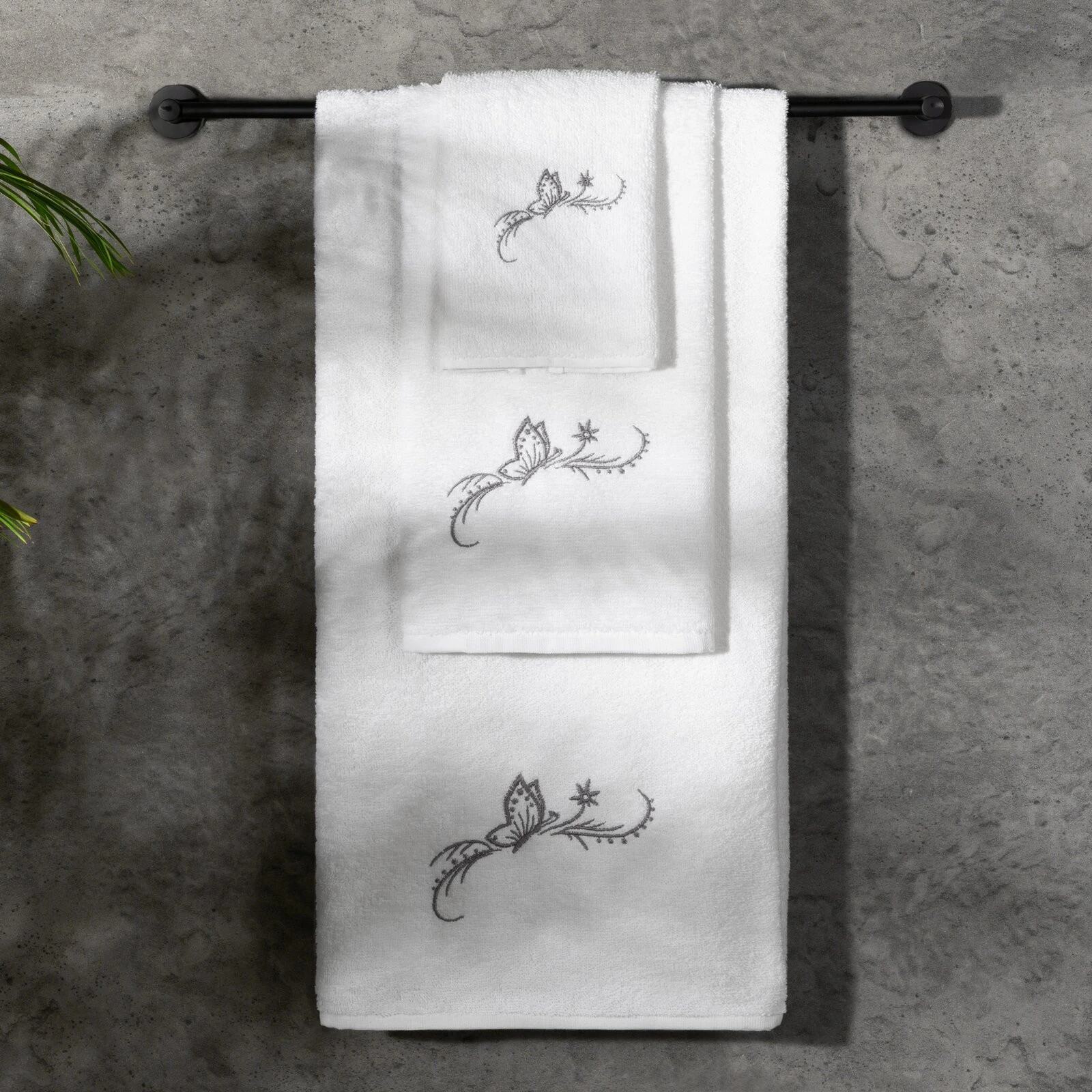 Komplet ręczników z haftem szerokość: 56 cm, długość: 36 cm, kolor: biały, Gramatura: 380 GSM, Skład: 100% bawełna