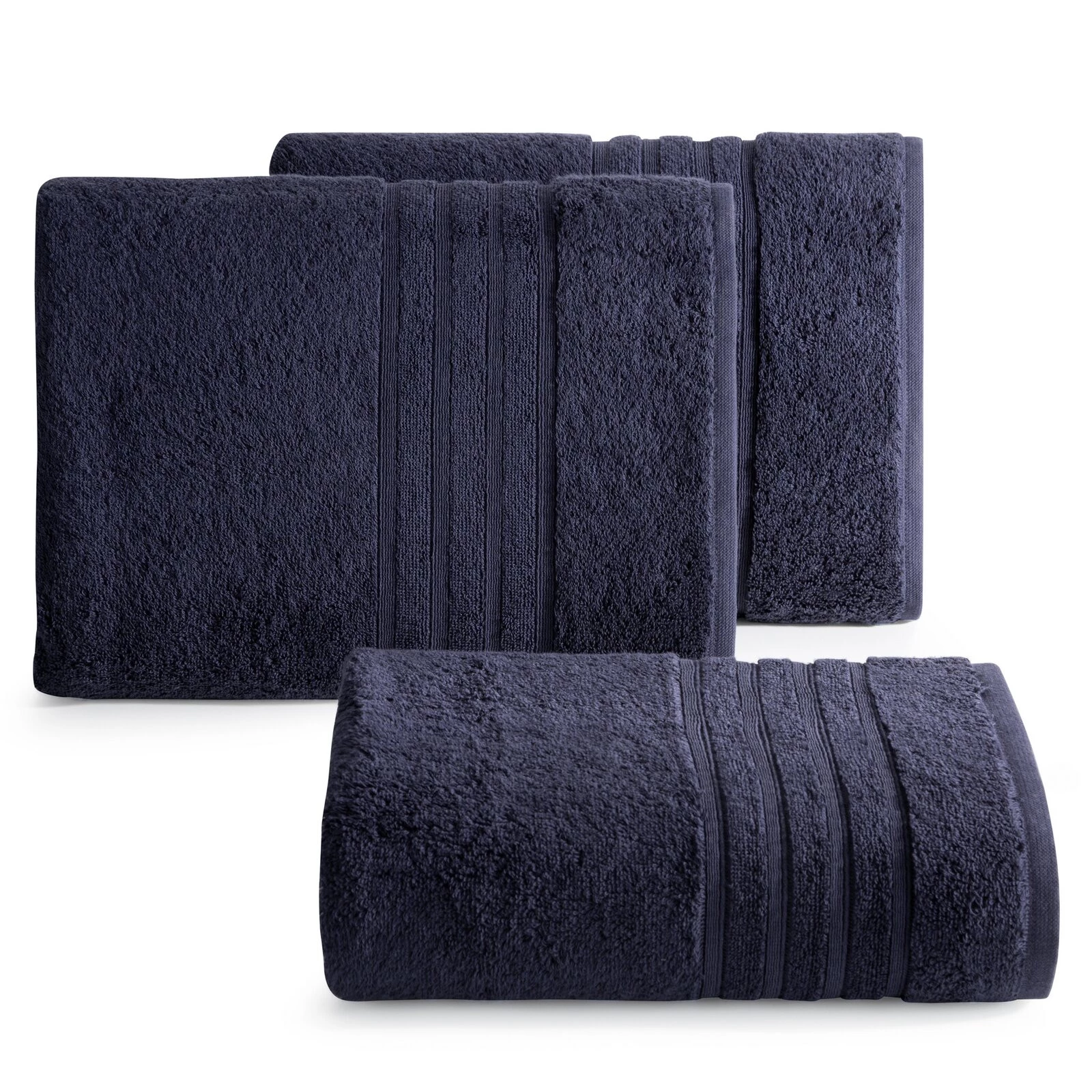 Ręcznik z bawełny egipskiej zdobiony pasami szerokość: 50 cm, długość: 90 cm, kolor: granatowy, Gramatura: 500 GSM, Skład: 100% bawełna