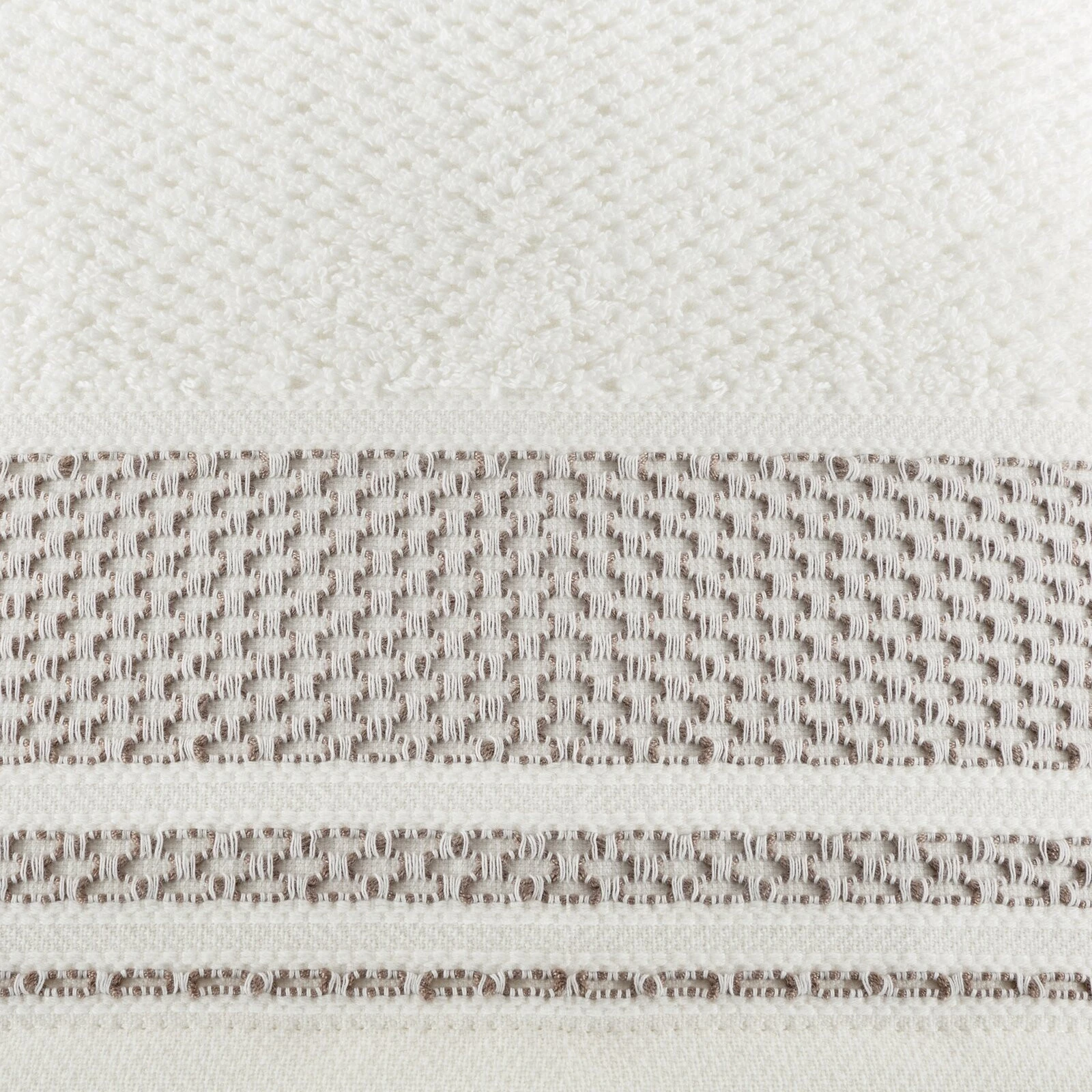 szerokość: 70 cm, długość: 140 cm, kolor: kremowy, Gramatura: 500 GSM, Skład: 100% bawełna; część ozdobna: 55% bawełna, 45% poliester