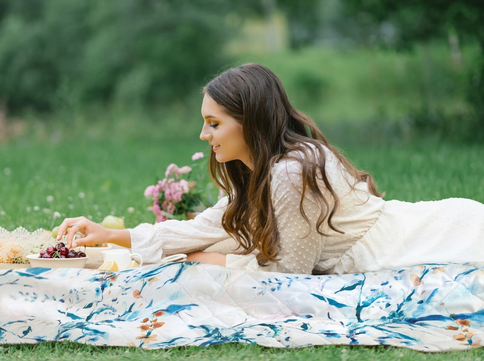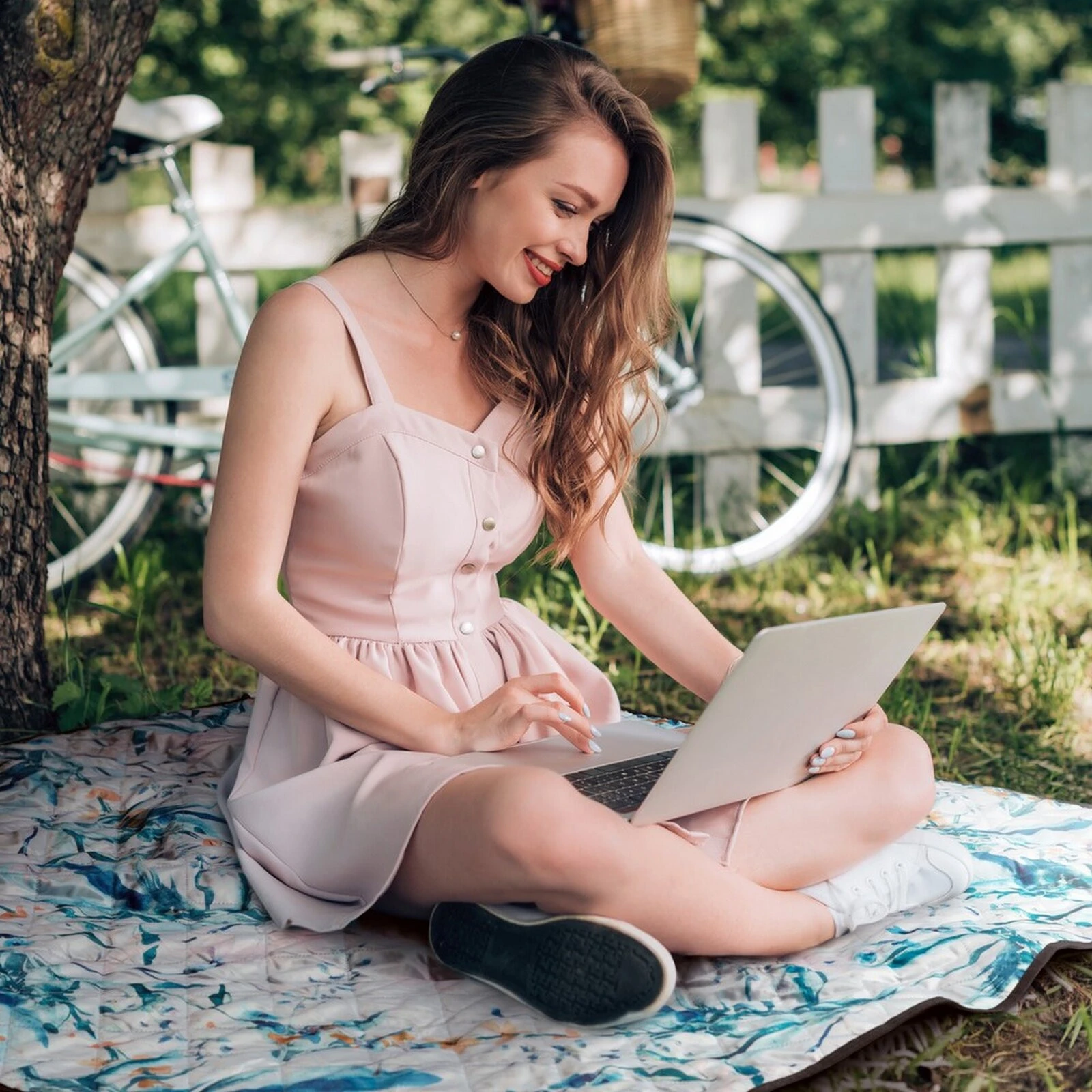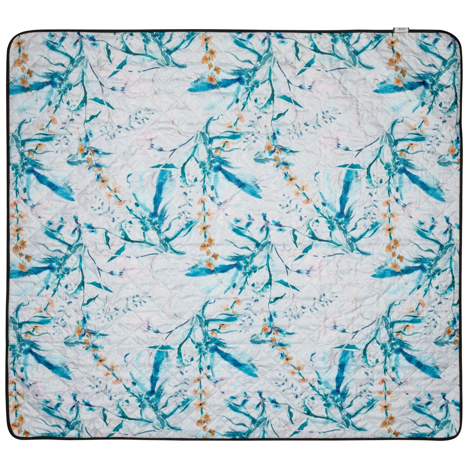 Koc piknikowy z roslinnym wzornictwem szerokość: 130 cm, długość: 145 cm, kolor: biały, Gramatura: 30+100+70 GSM, Skład: 100% poliester