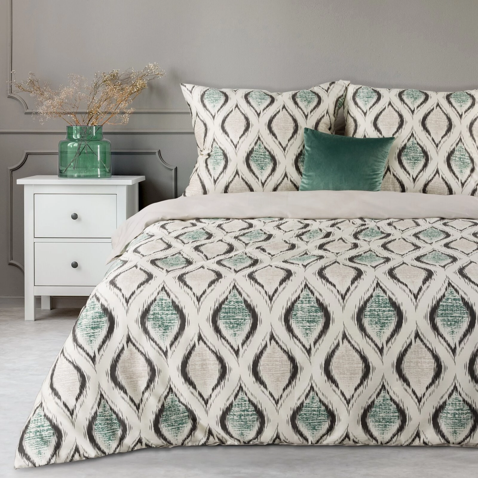 - Komplet pościeli z satyny bawełnianej z nadrukiem szerokość: 220 cm, długość: 200 cm, kolor: kremowy, Gramatura: 115 GSM, Skład: satyna, 100% bawełna