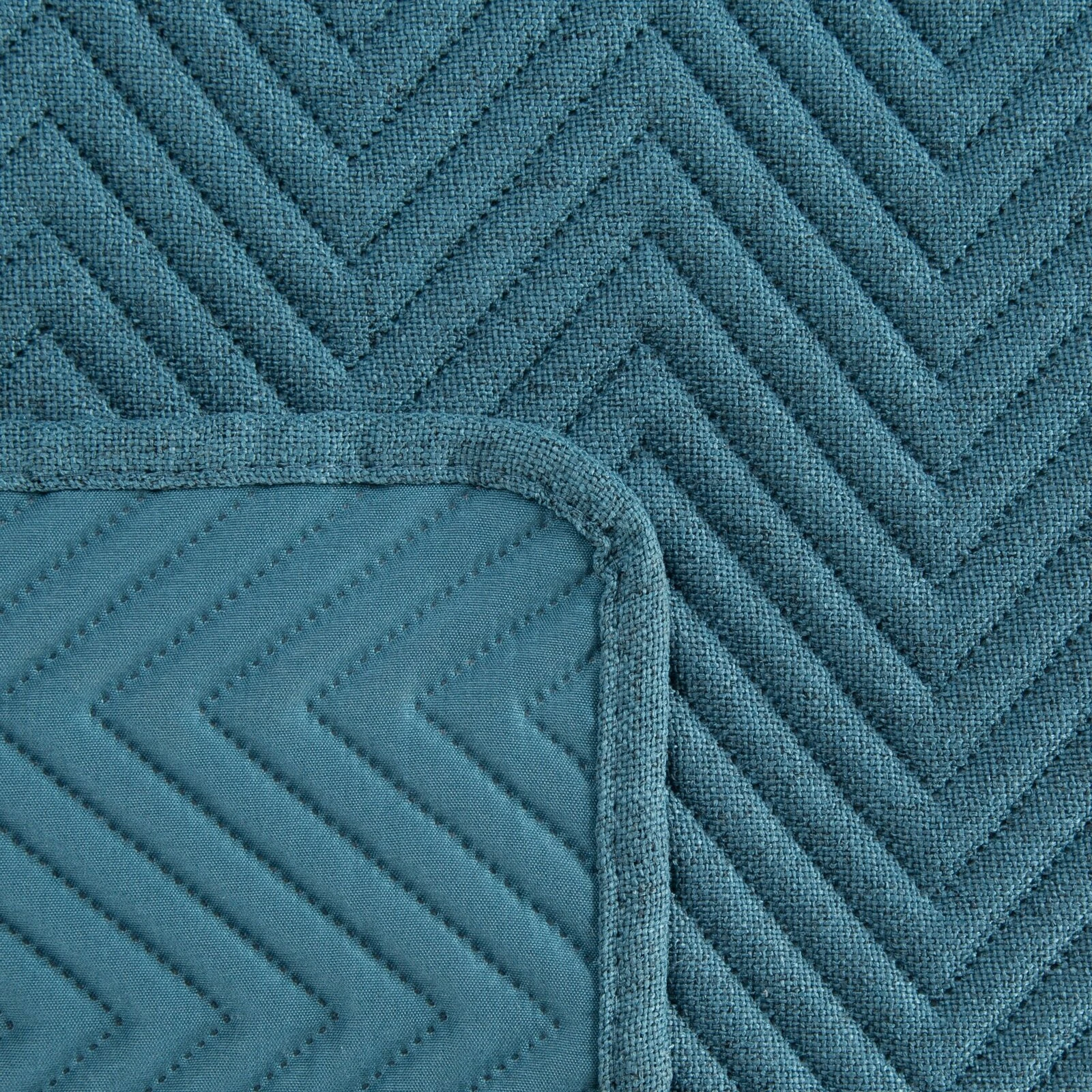 Narzuta hot press imitująca len szerokość: 220 cm, długość: 240 cm, kolor: niebieski, Gramatura: 185+120+70 GSM, Skład: 100% poliester