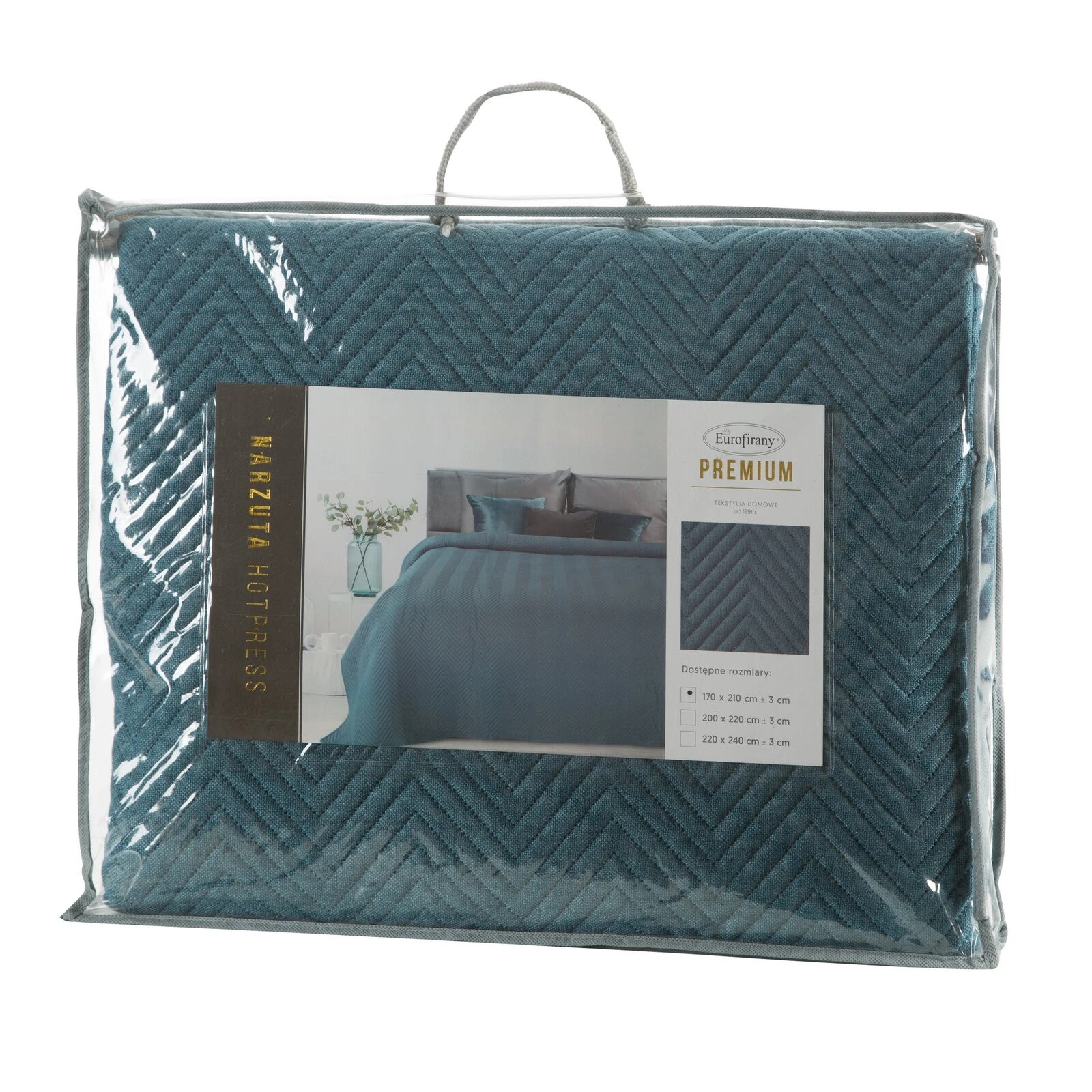 - Narzuta hot press imitująca len szerokość: 220 cm, długość: 240 cm, kolor: niebieski, Gramatura: 185+120+70 GSM, Skład: 100% poliester