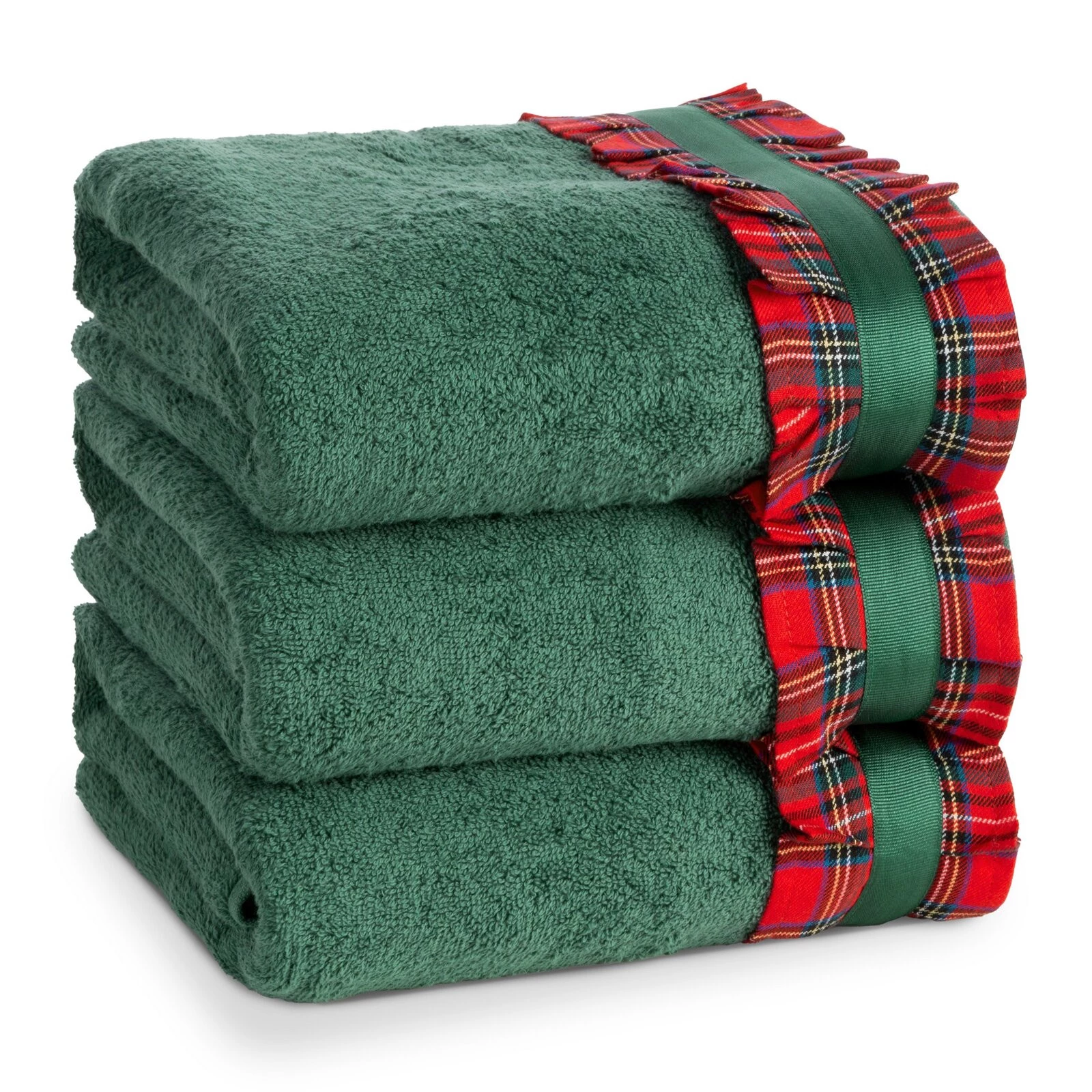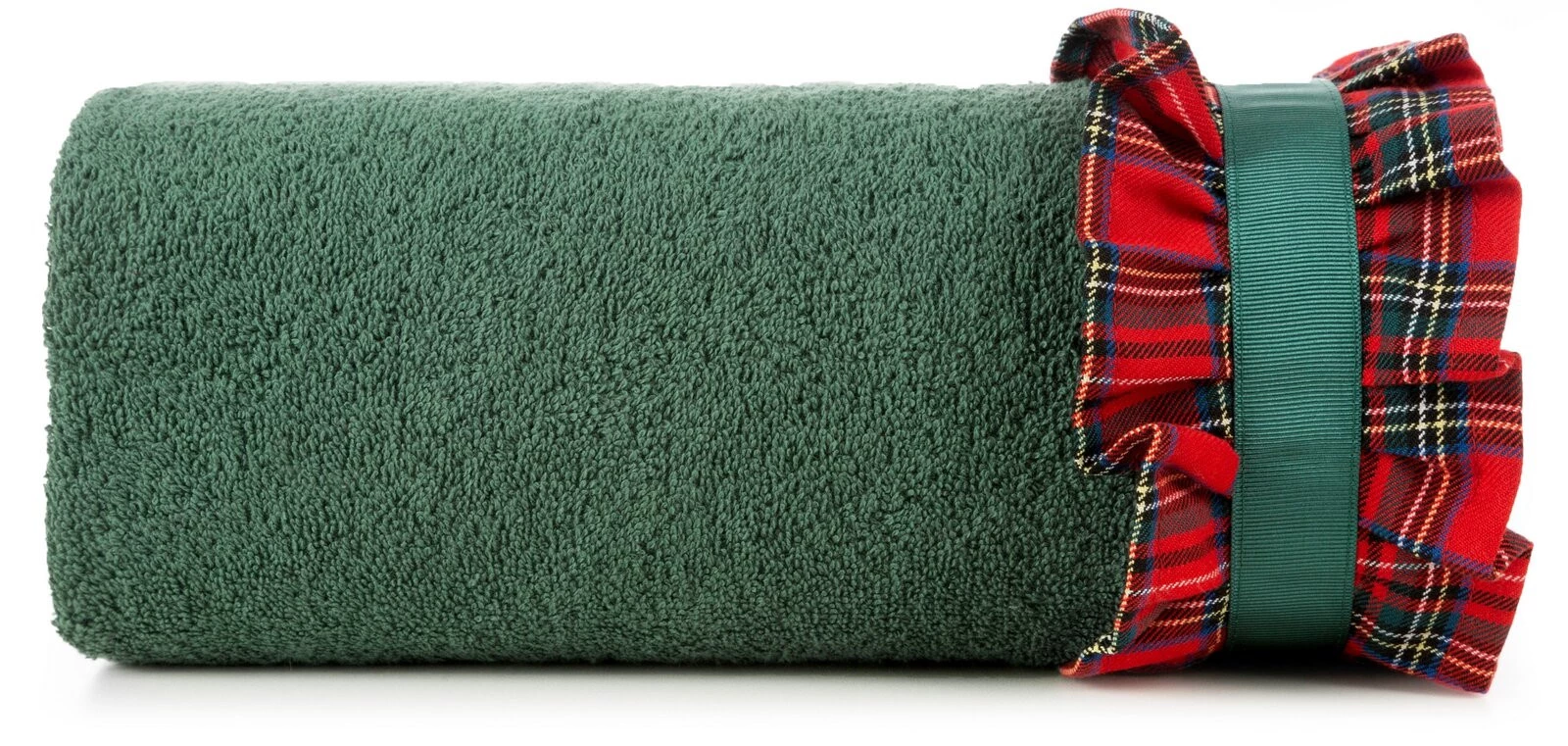 szerokość: 70 cm, długość: 140 cm, kolor: butelkowy zielony, Gramatura: 450 GSM, Skład: 100% bawełna; część ozdobna: 80% bawełna, 20% poliester