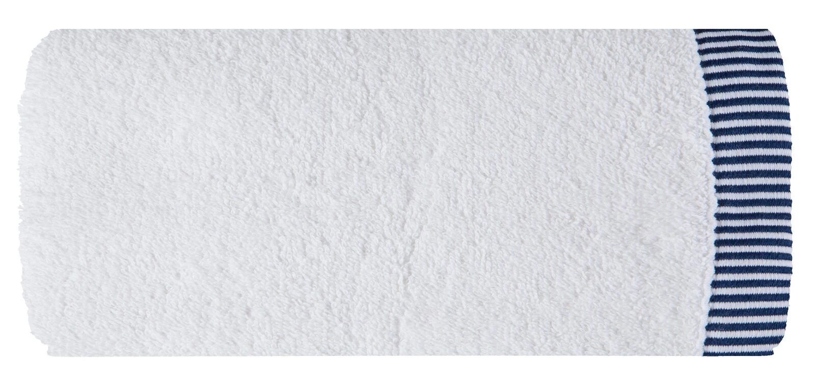 Komplet ręczników z ozdobną bordiurą w paseczki szerokość: 36 cm, długość: 25 cm, kolor: biały, Gramatura: 450 GSM, Skład: 100% bawełna; część ozdobna: 95% bawełna, 5% poliester