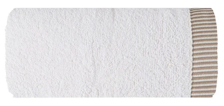 Komplet ręczników z ozdobną bordiurą w paseczki szerokość: 36 cm, długość: 25 cm, kolor: kremowy, Gramatura: 450 GSM, Skład: 100% bawełna; część ozdobna: 95% bawełna, 5% poliester