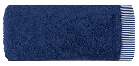 Komplet ręczników z ozdobną bordiurą w paseczki szerokość: 36 cm, długość: 25 cm, kolor: granatowy, Gramatura: 450 GSM, Skład: 100% bawełna; część ozdobna: 95% bawełna, 5% poliester