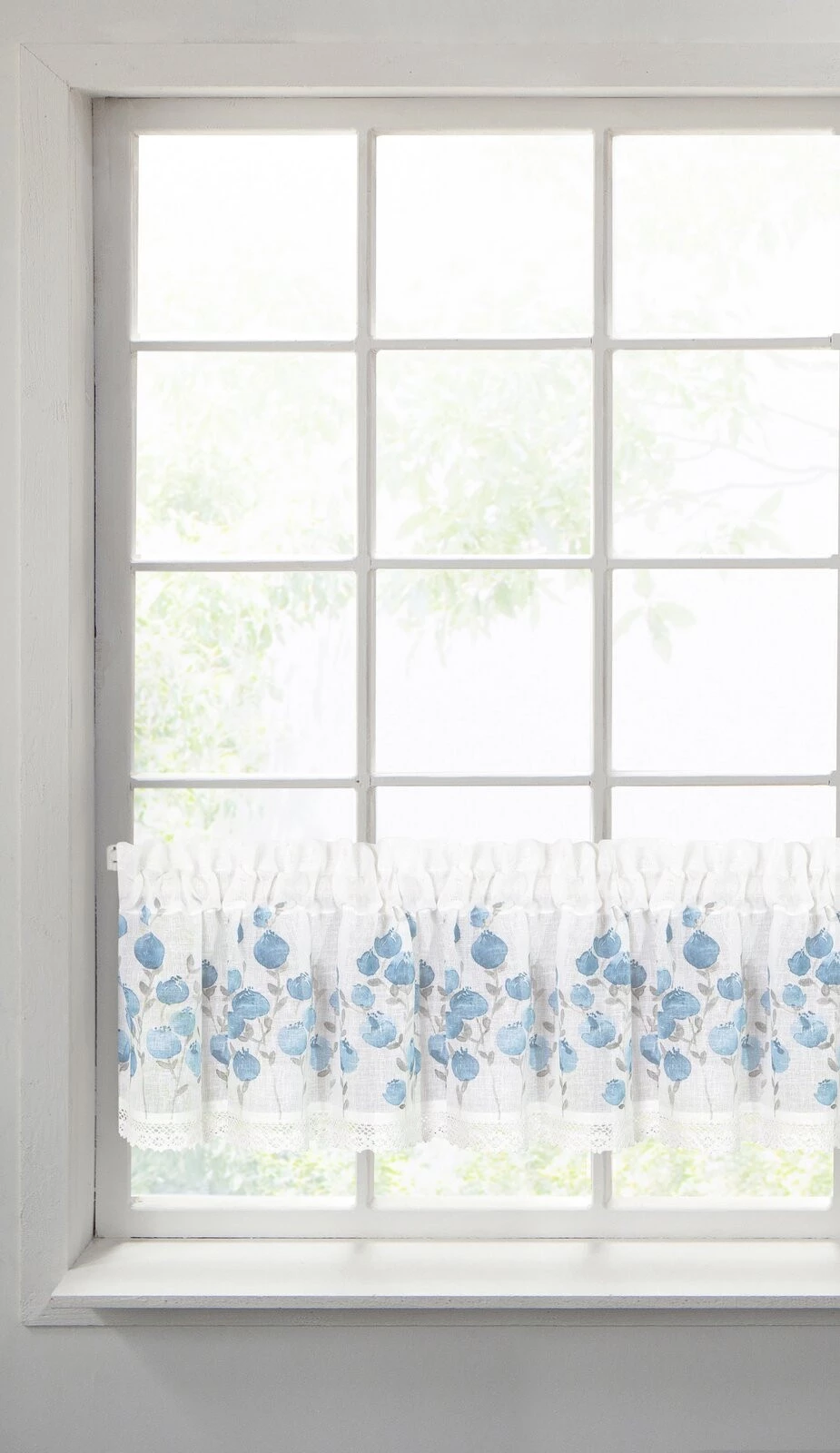 Zazdrostka z nadrukiem zdobiona koronką szerokość: 150 cm, długość: 30 cm, kolor: biały, Gramatura: 110 GSM, Skład: 100% poliester