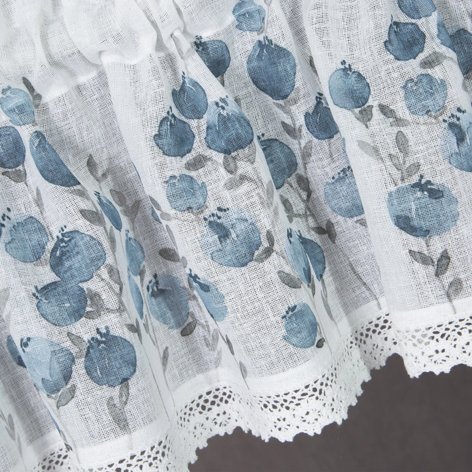 - Zazdrostka z nadrukiem zdobiona koronką szerokość: 150 cm, długość: 30 cm, kolor: biały, Gramatura: 110 GSM, Skład: 100% poliester