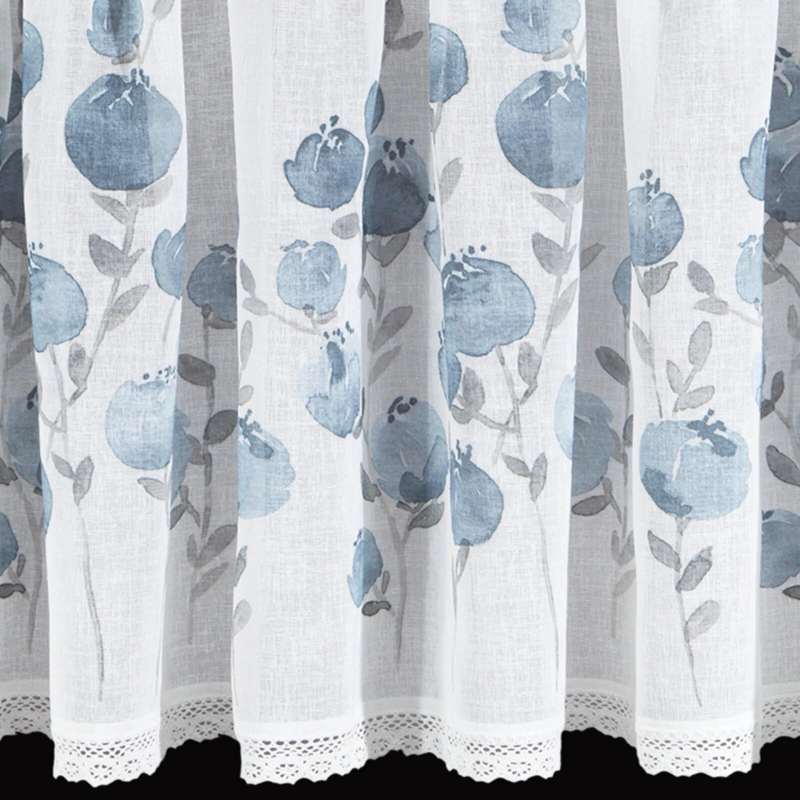 - Zazdrostka z nadrukiem zdobiona koronką szerokość: 150 cm, długość: 60 cm, kolor: biały, Gramatura: 110 GSM, Skład: 100% poliester