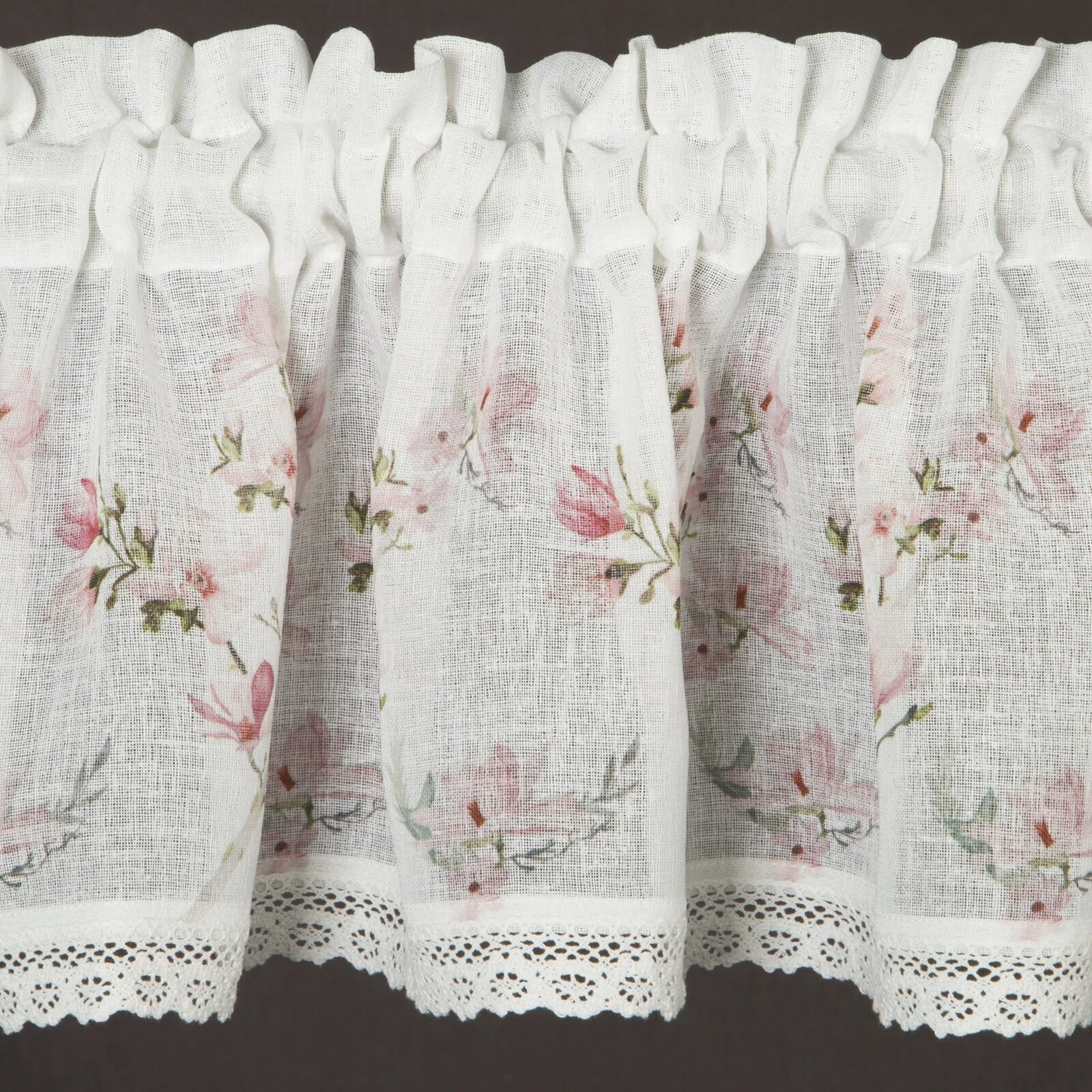 - Zazdrostka z nadrukiem zdobiona koronką szerokość: 150 cm, długość: 30 cm, kolor: biały, Gramatura: 110 GSM, Skład: 100% poliester