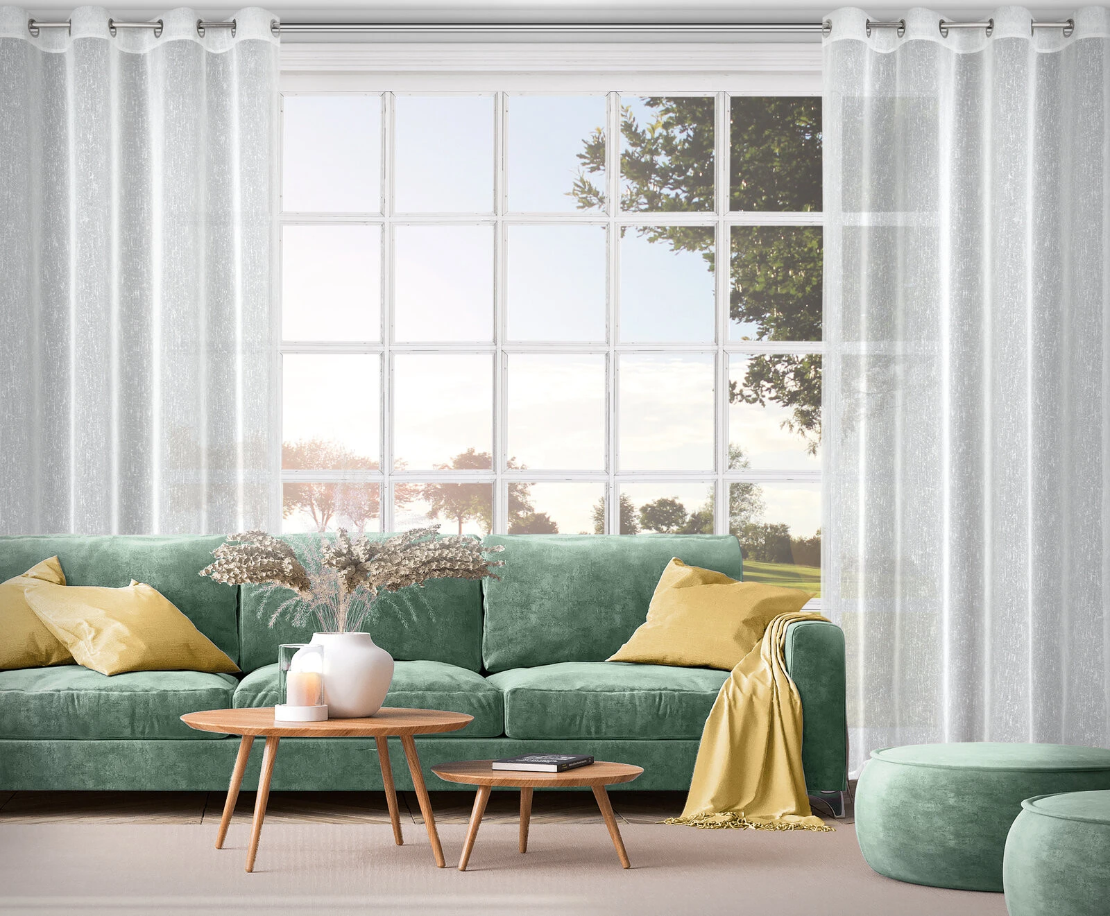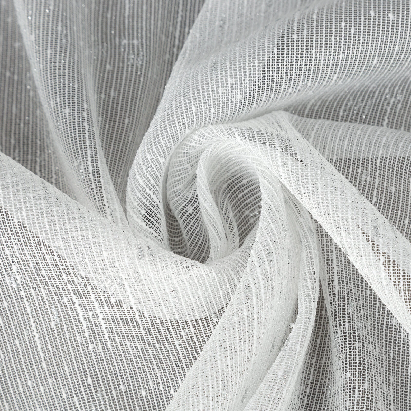 - Firana gotowa o strukturze deszczyku zdobiona srebrną nicią szerokość: 140 cm, długość: 250 cm, kolor: biały, Gramatura: 80 GSM, Skład: 100% poliester