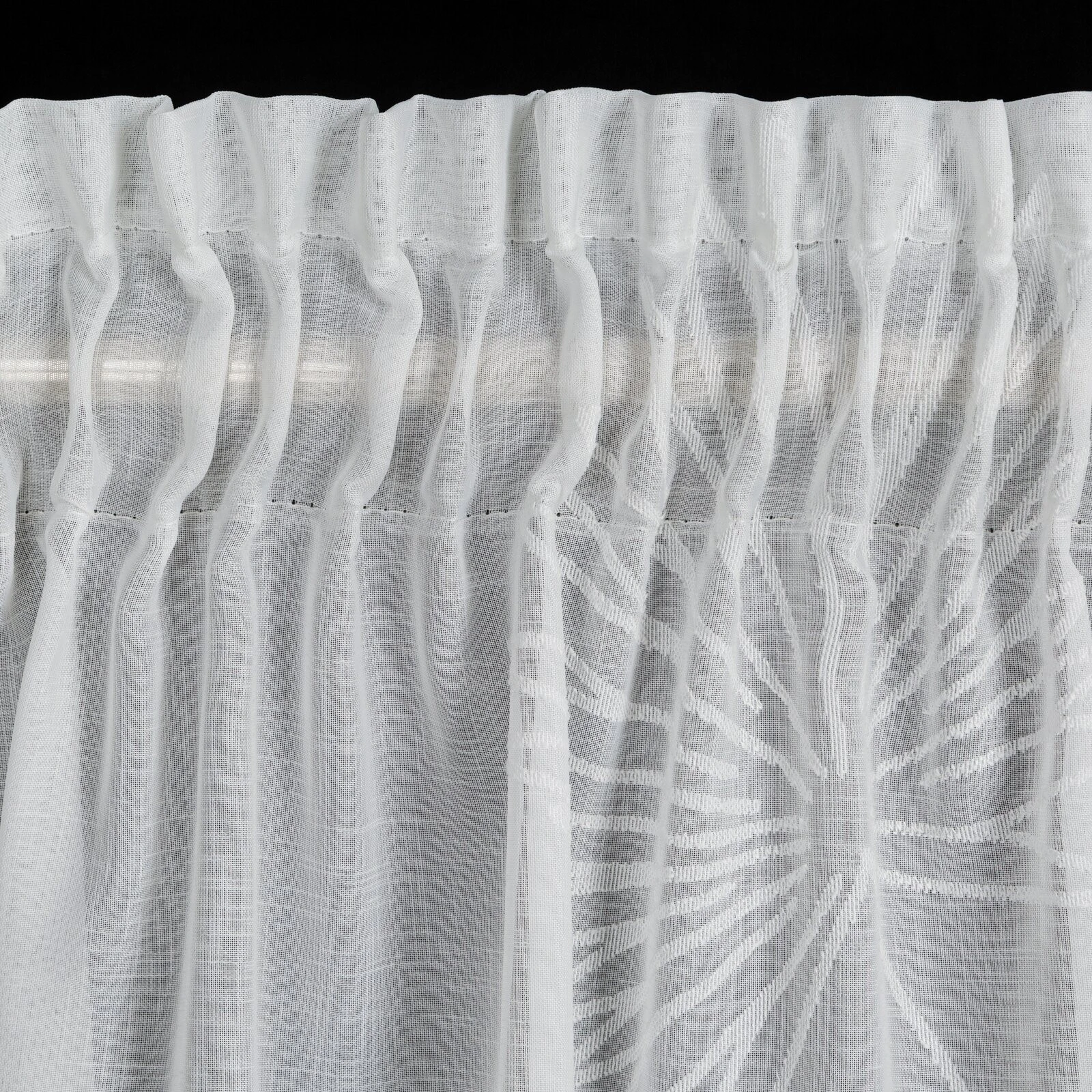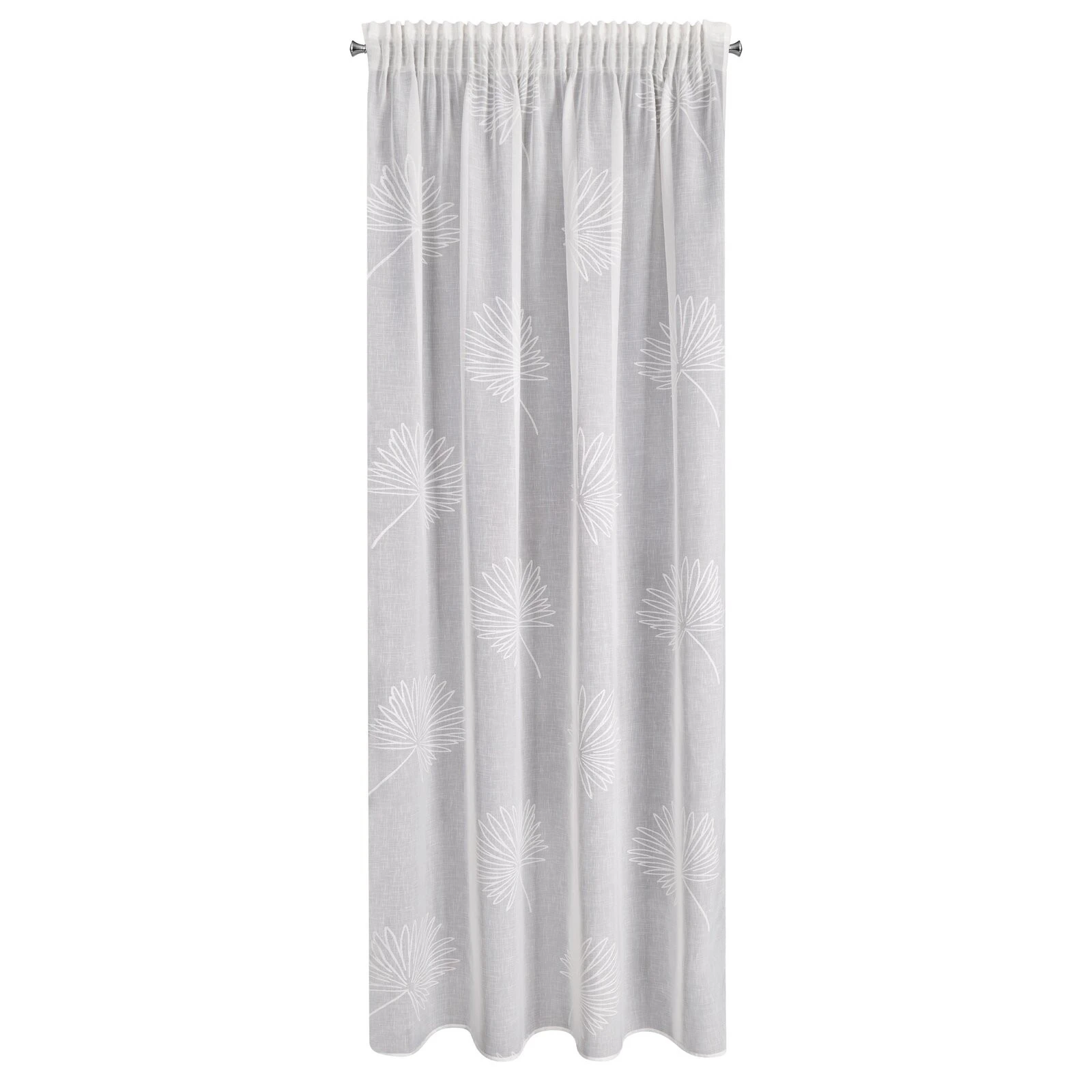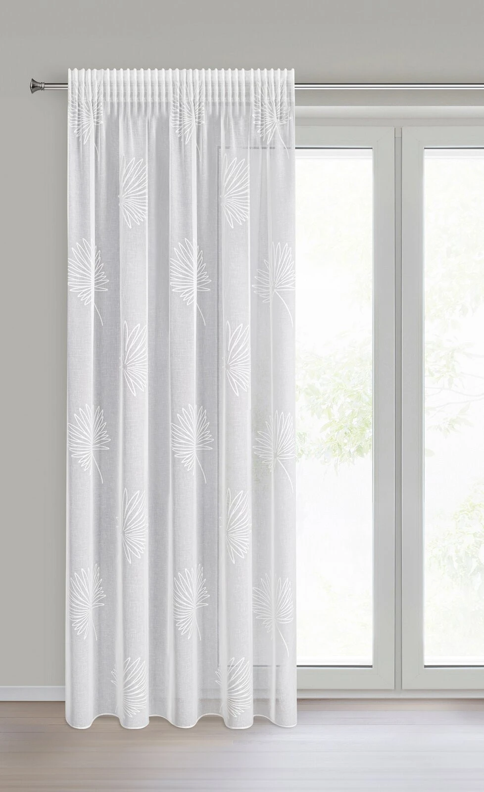 - Firana gotowa zdobiona wzorem roślinnym szerokość: 140 cm, długość: 270 cm, kolor: biały, Gramatura: 90 GSM, Skład: 100% poliester