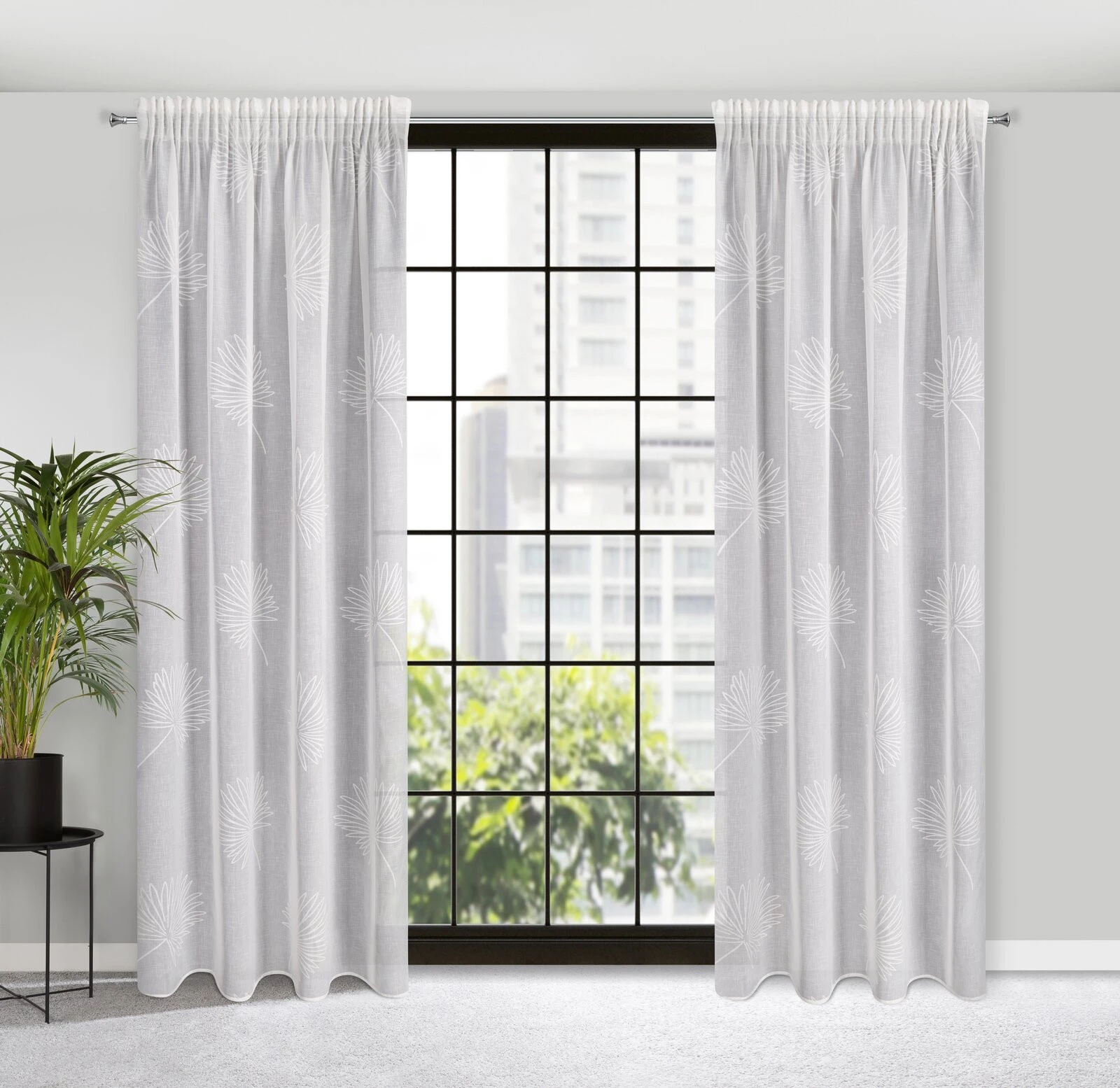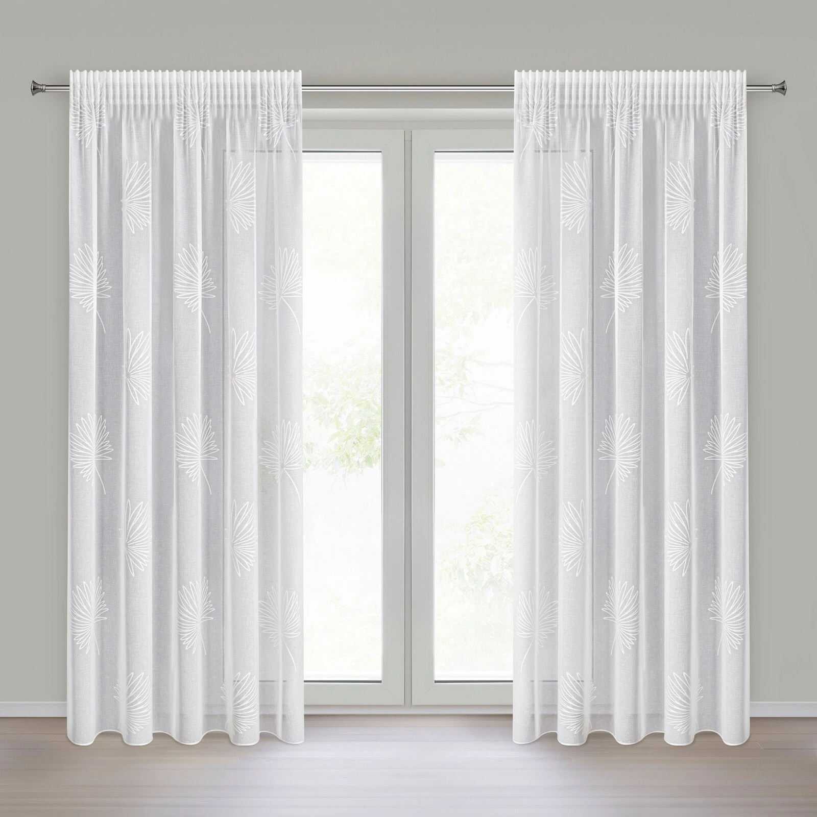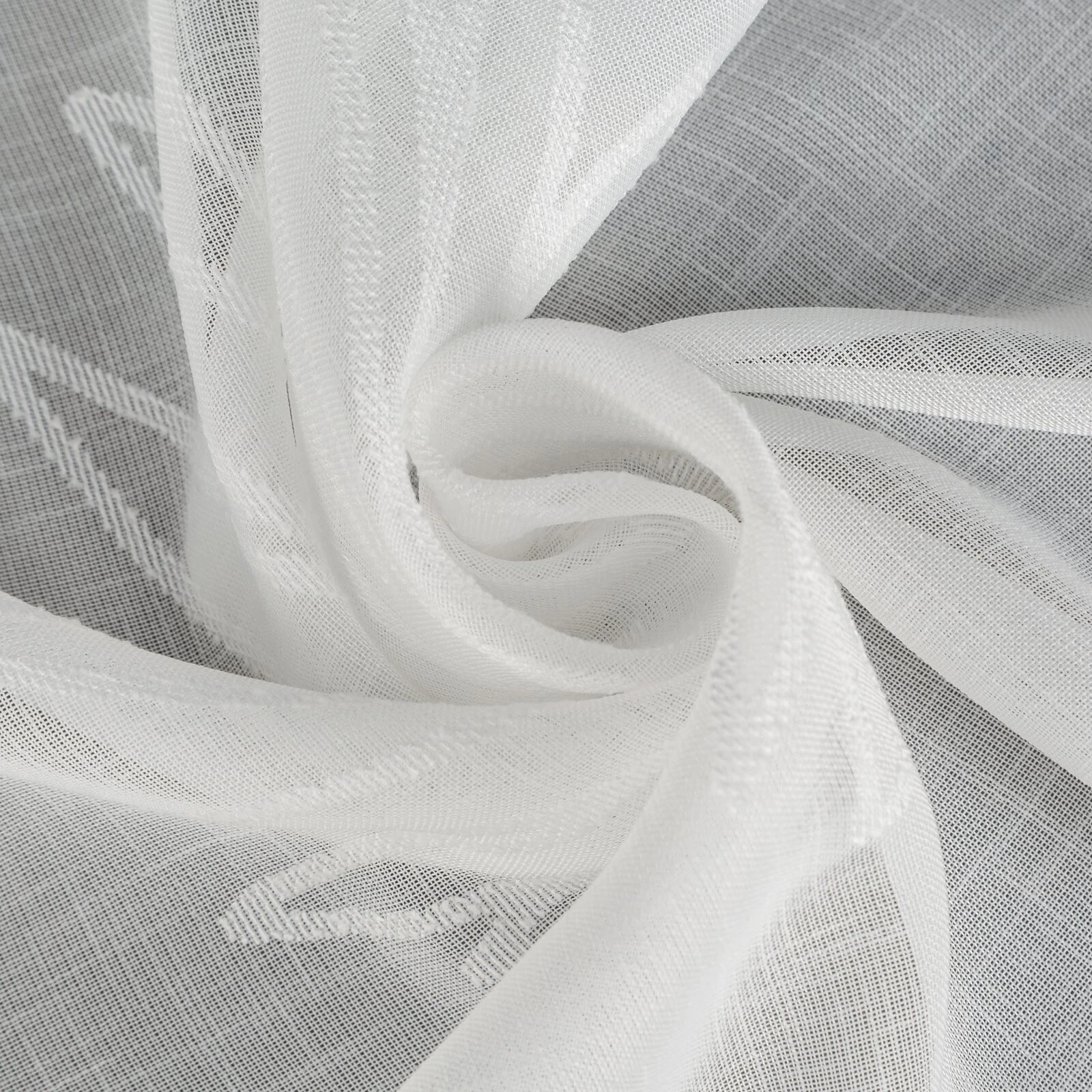 - Firana gotowa zdobiona wzorem roślinnym szerokość: 140 cm, długość: 270 cm, kolor: biały, Gramatura: 90 GSM, Skład: 100% poliester