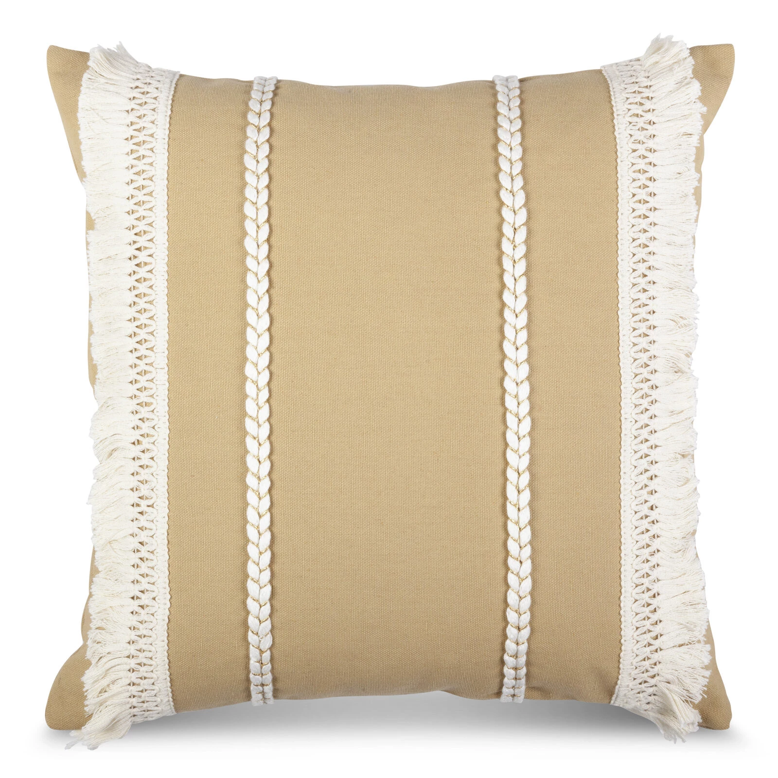 Poszewka dekoracyjna w stylu boho zdobiona frędzlami szerokość: 45 cm, długość: 45 cm, kolor: beżowy, Gramatura: 230 GSM, Skład: 30% bawełna, 70% poliester