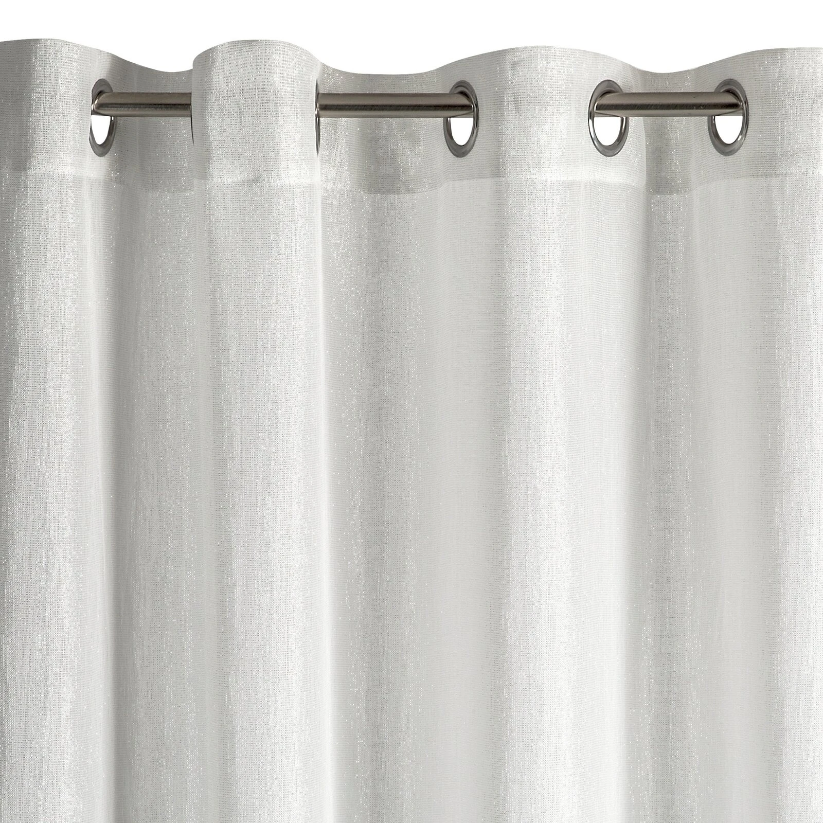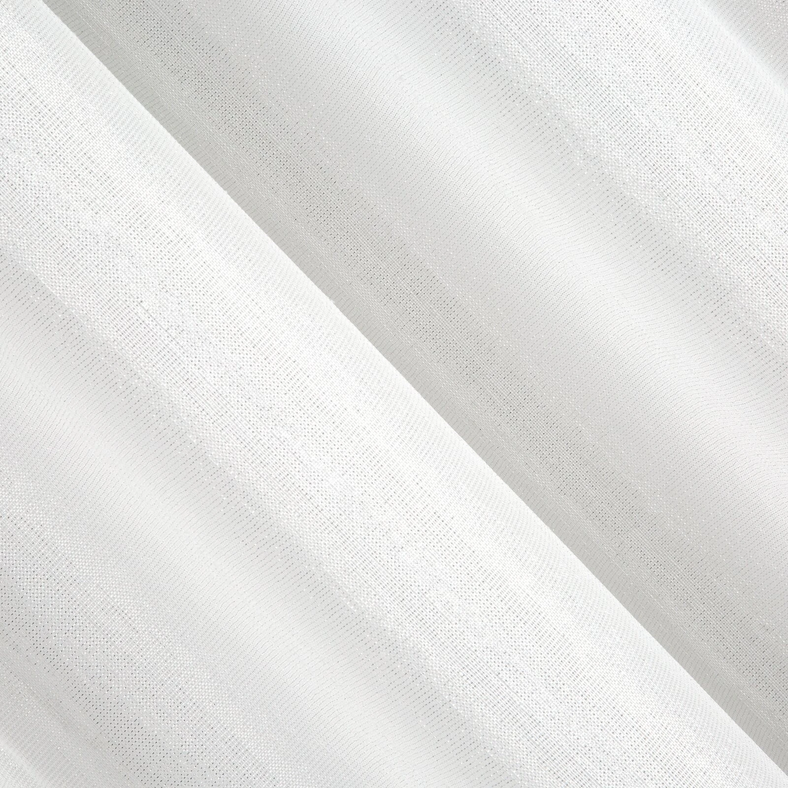 Minimalistyczna firana z lekkiej, białej tkaniny poprzetykana jest subtelnie błyszczącą, srebrną nicią. Prosta dekoracja okienna do każdego wnętrza i aranżacji. szerokość: 140 cm, długość: 250 cm, kolor: biały, Gramatura: 95 GSM, Skład: 100% poliester