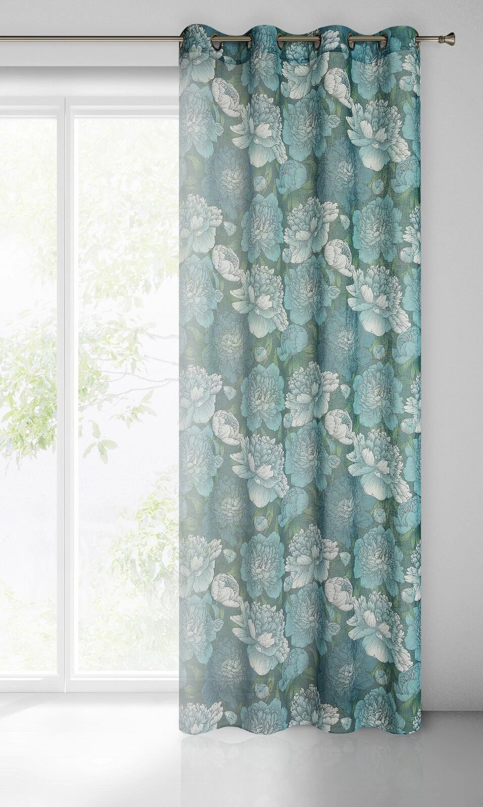 Klasyczna zasłona z tkaniny o strukturze płótna zdobiona pastelowym nadrukiem kwiatów ogrodowych. Średni stopień zaciemnienia. Tkanina łatwa w prasowaniu. szerokość: 140 cm, długość: 250 cm, kolor: oliwkowy, Gramatura: 130 GSM, Skład: 100% poliester
