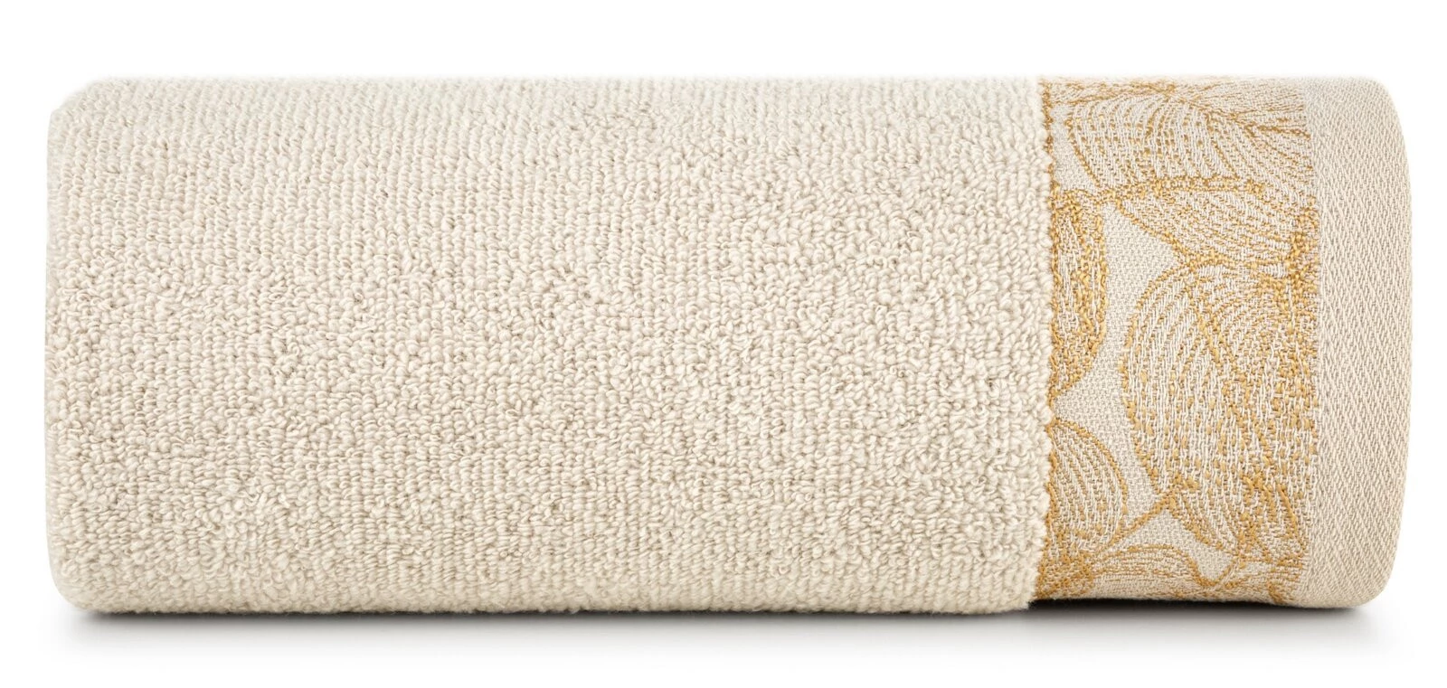 Ręcznik z ozdobną, żakardową bordiurą szerokość: 70 cm, długość: 140 cm, kolor: beżowy, Gramatura: 400 GSM, Skład: 100% bawełna; część ozdobna: 95% bawełna, 5% poliester