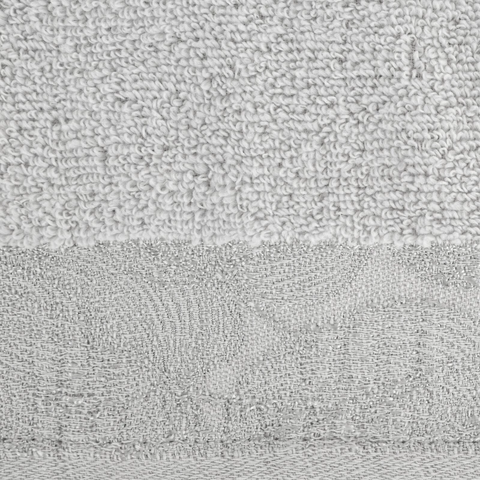 Ręcznik z ozdobną, żakardową bordiurą szerokość: 30 cm, długość: 50 cm, kolor: jasnoszary, Gramatura: 400 GSM, Skład: 100% bawełna; część ozdobna: 95% bawełna, 5% poliester