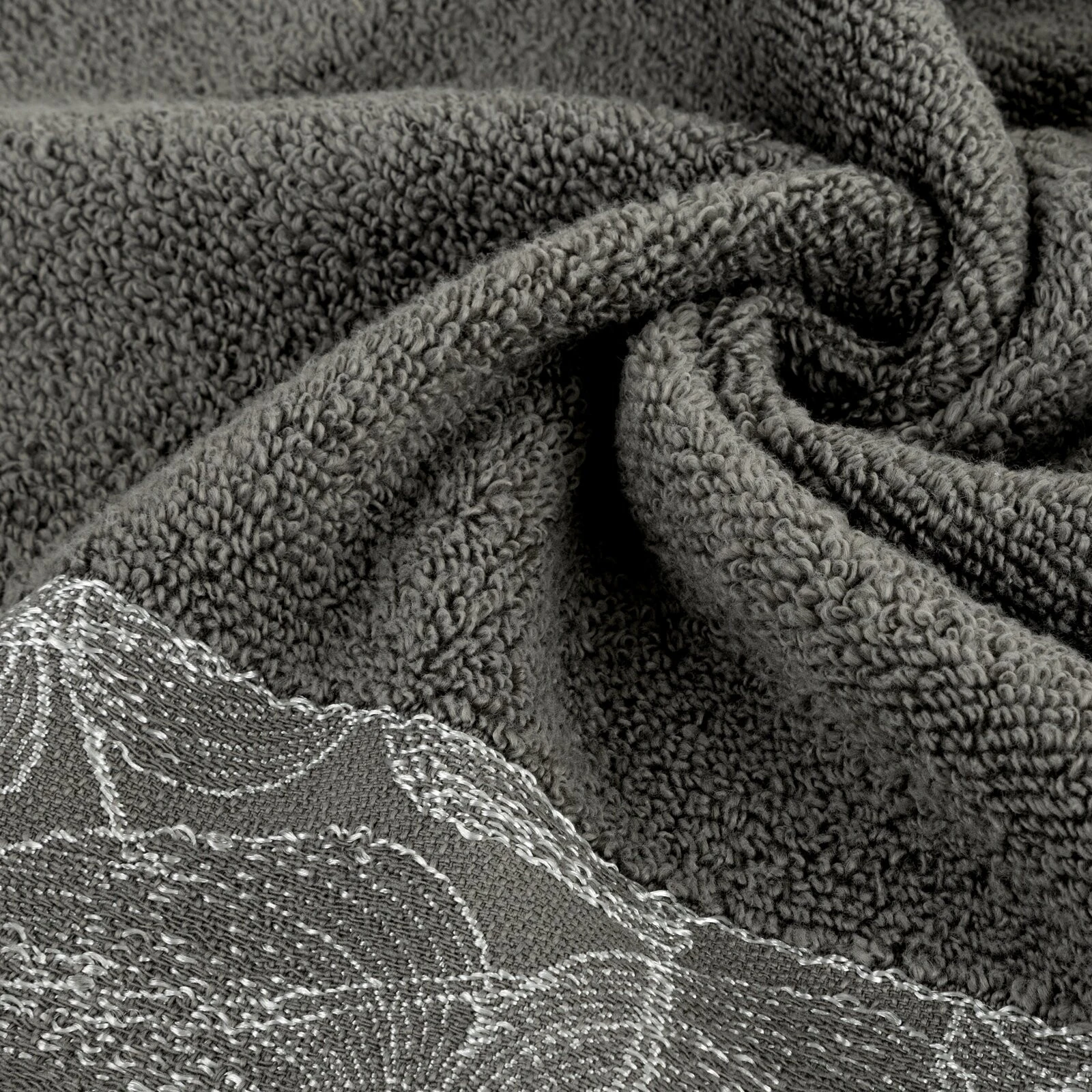 Ręcznik z ozdobną, żakardową bordiurą szerokość: 30 cm, długość: 50 cm, kolor: stalowy, Gramatura: 400 GSM, Skład: 100% bawełna; część ozdobna: 95% bawełna, 5% poliester