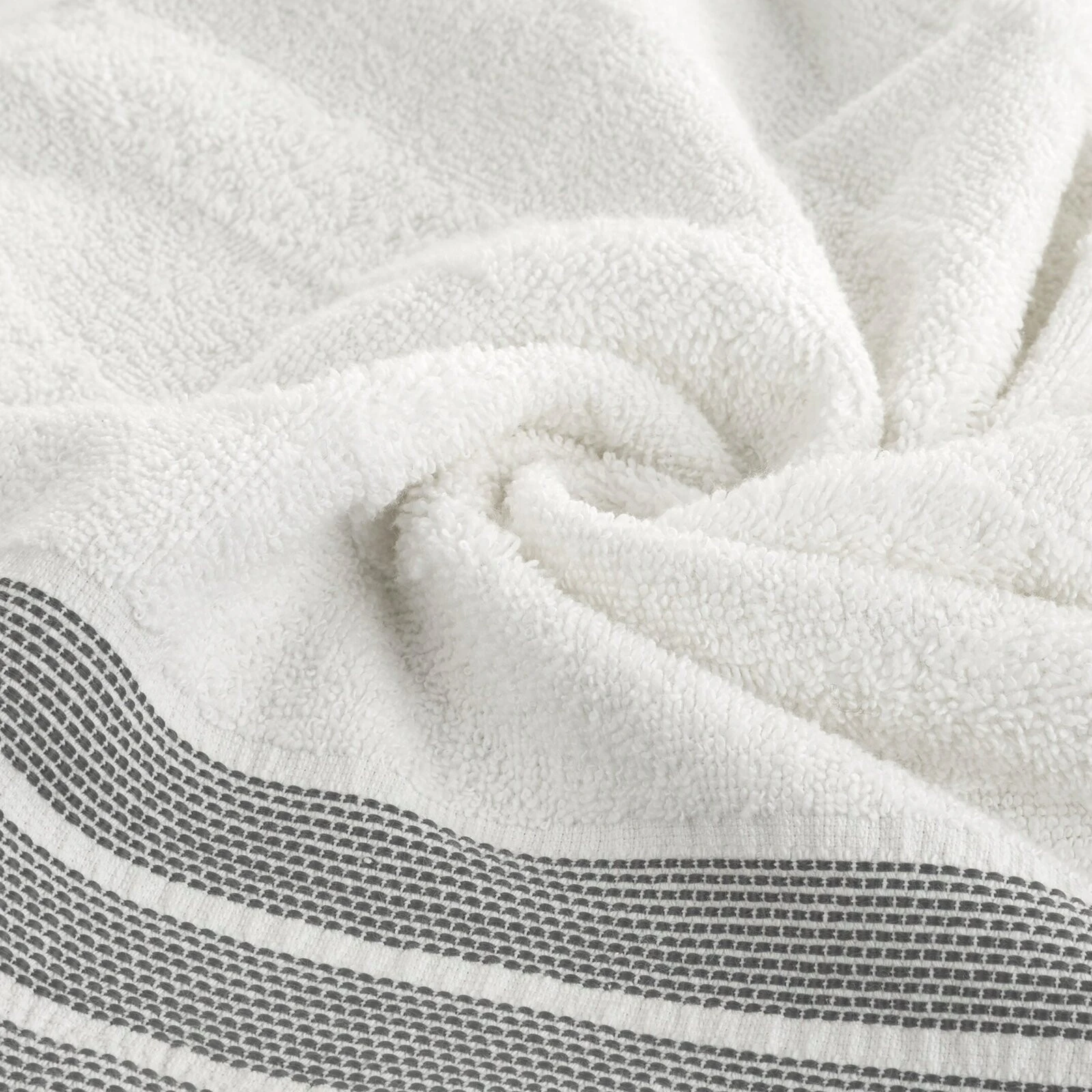 Ręcznik z ozdobną, żakardową bordiurą szerokość: 30 cm, długość: 50 cm, kolor: biały, Gramatura: 500 GSM, Skład: 100% bawełna; część ozdobna: 95% bawełna, 5% poliester
