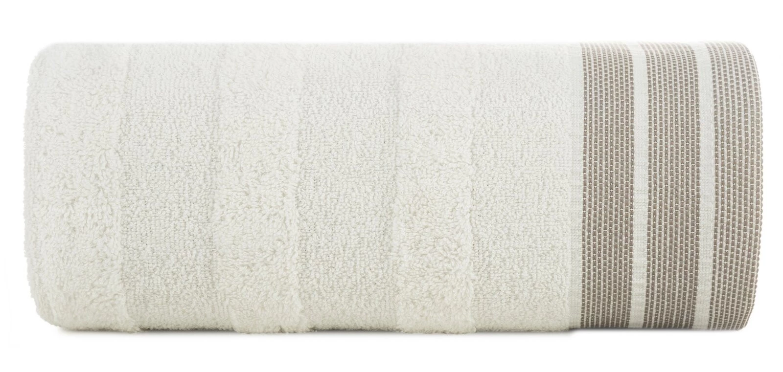 Ręcznik z ozdobną, żakardową bordiurą szerokość: 30 cm, długość: 50 cm, kolor: kremowy, Gramatura: 500 GSM, Skład: 100% bawełna; część ozdobna: 95% bawełna, 5% poliester