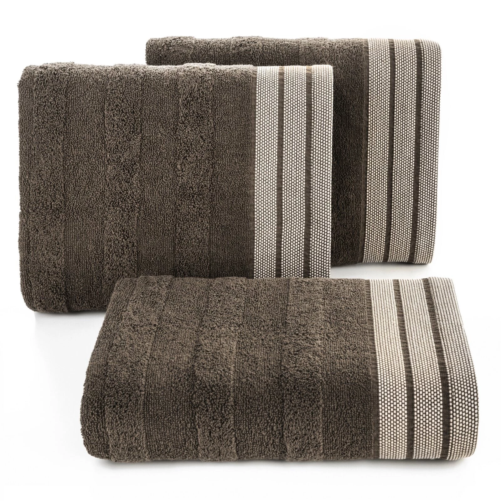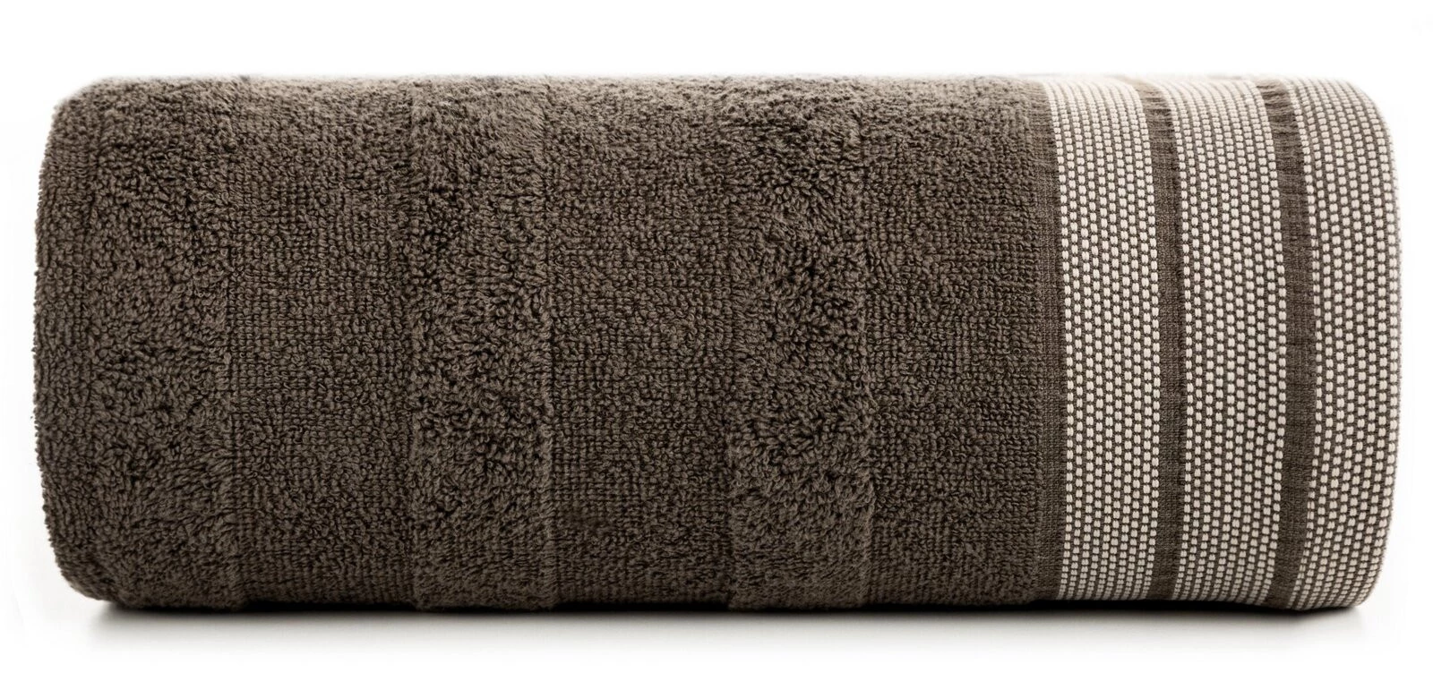 Ręcznik z ozdobną, żakardową bordiurą szerokość: 30 cm, długość: 50 cm, kolor: brązowy, Gramatura: 500 GSM, Skład: 100% bawełna; część ozdobna: 95% bawełna, 5% poliester