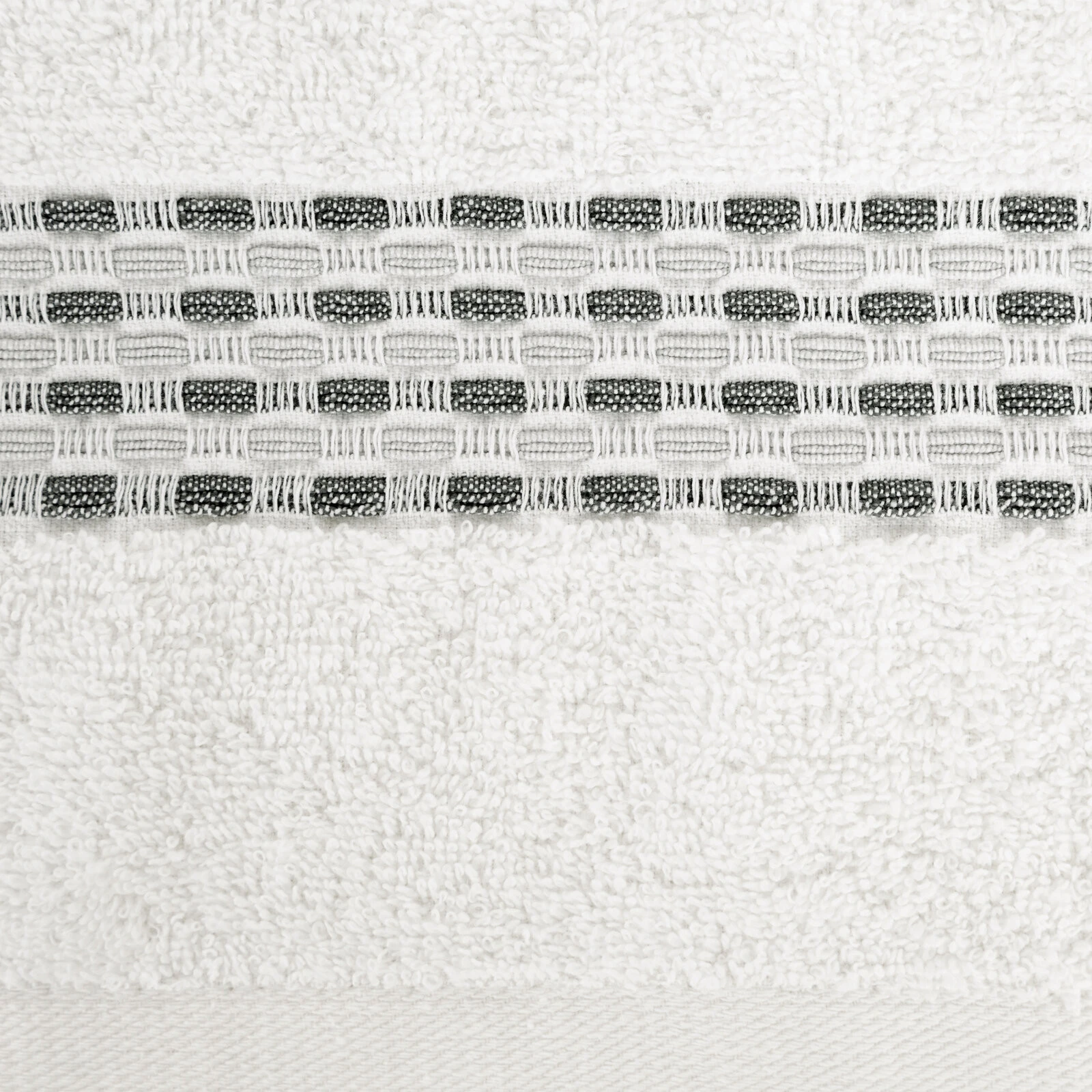 Ręcznik z ozdobną, żakardową bordiurą szerokość: 30 cm, długość: 50 cm, kolor: biały, Gramatura: 500 GSM, Skład: 100% bawełna; część ozdobna: 95% bawełna, 5% poliester