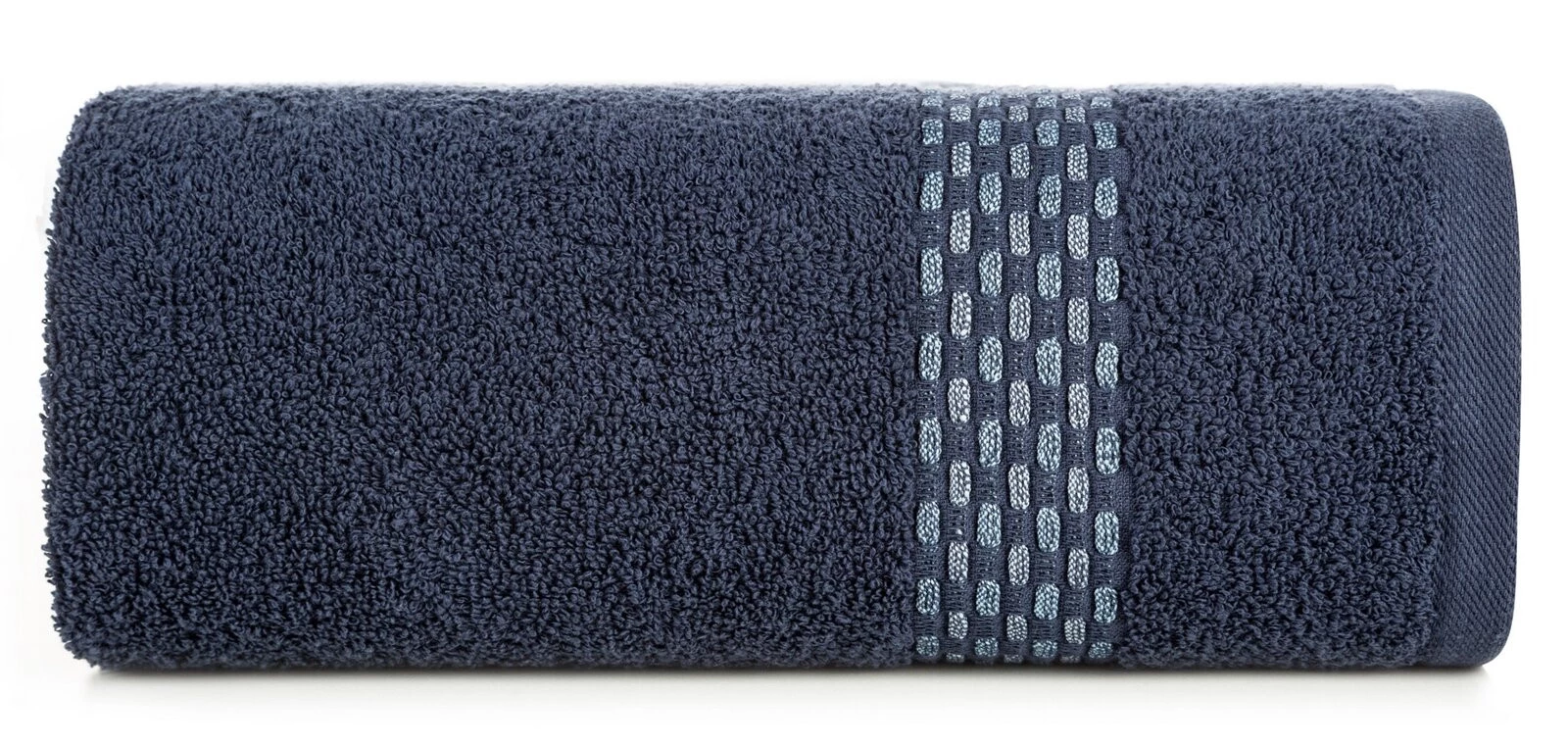 Ręcznik z ozdobną, żakardową bordiurą szerokość: 50 cm, długość: 90 cm, kolor: granatowy, Gramatura: 500 GSM, Skład: 100% bawełna; część ozdobna: 95% bawełna, 5% poliester