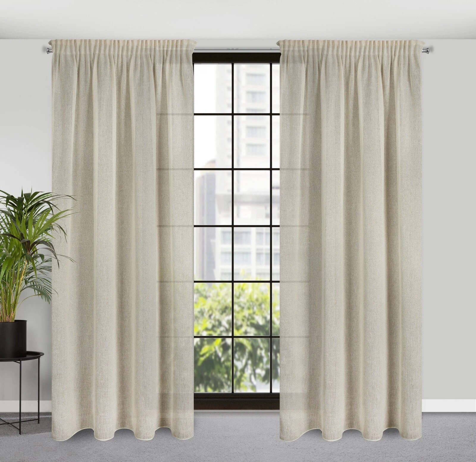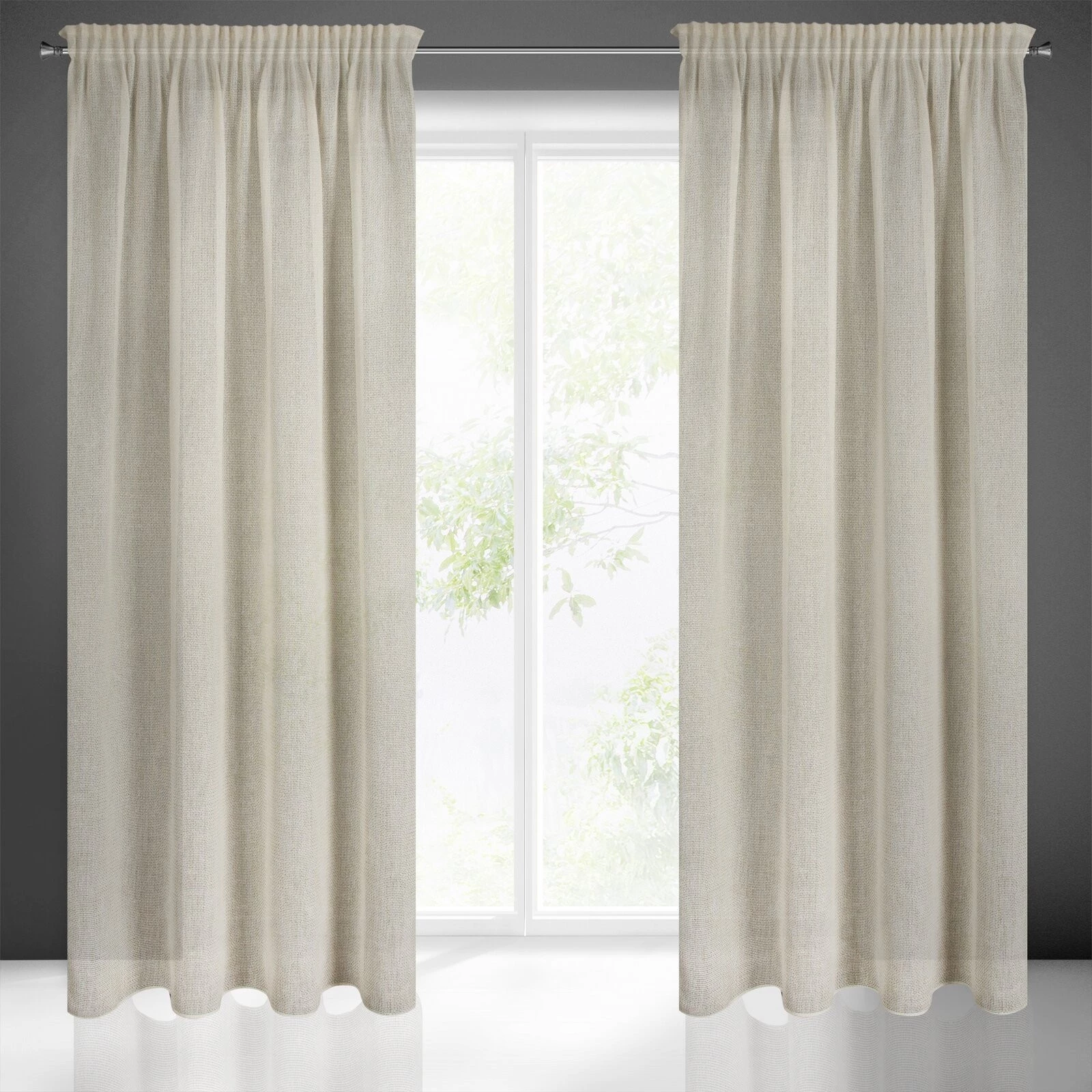 - Zasłona o strukturze siatki szerokość: 140 cm, długość: 270 cm, kolor: kremowy, Gramatura: 150 GSM, Skład: 100% poliester