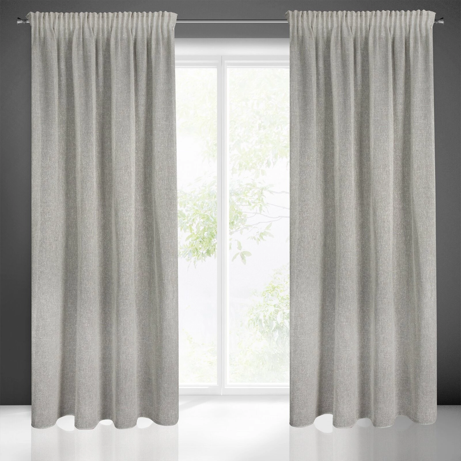 - Zasłona o strukturze siatki szerokość: 140 cm, długość: 270 cm, Gramatura: 150 GSM, Skład: 100% poliester