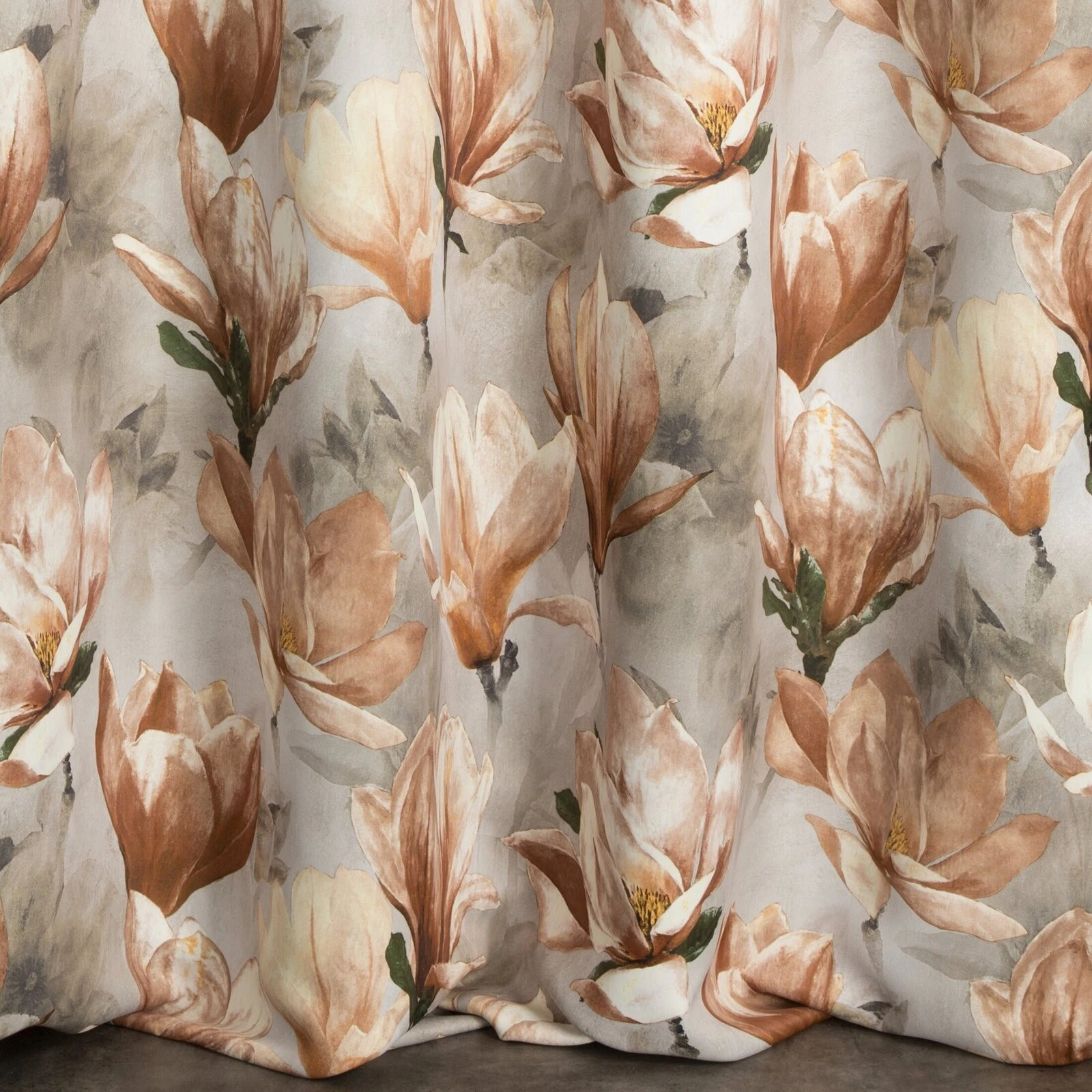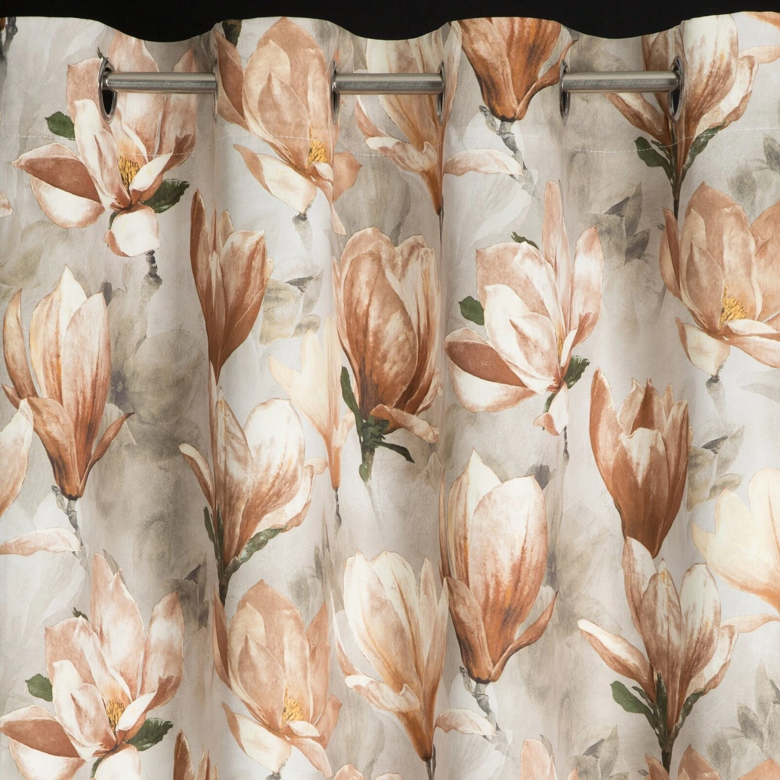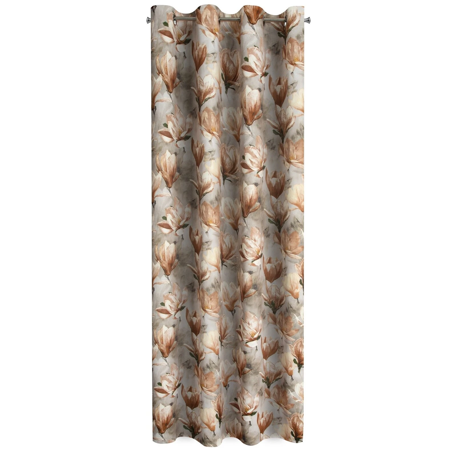 - Zasłona zaciemniająca z kwiatowym nadrukiem szerokość: 140 cm, długość: 250 cm, kolor: ciemnobeżowy, Gramatura: 210 GSM, Skład: 100% poliester