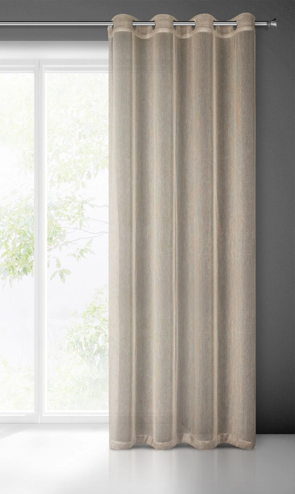 Zasłona gotowa o strukturze siatki szerokość: 140 cm, długość: 250 cm, kolor: beżowy, Gramatura: 95 GSM, Skład: 100% poliester