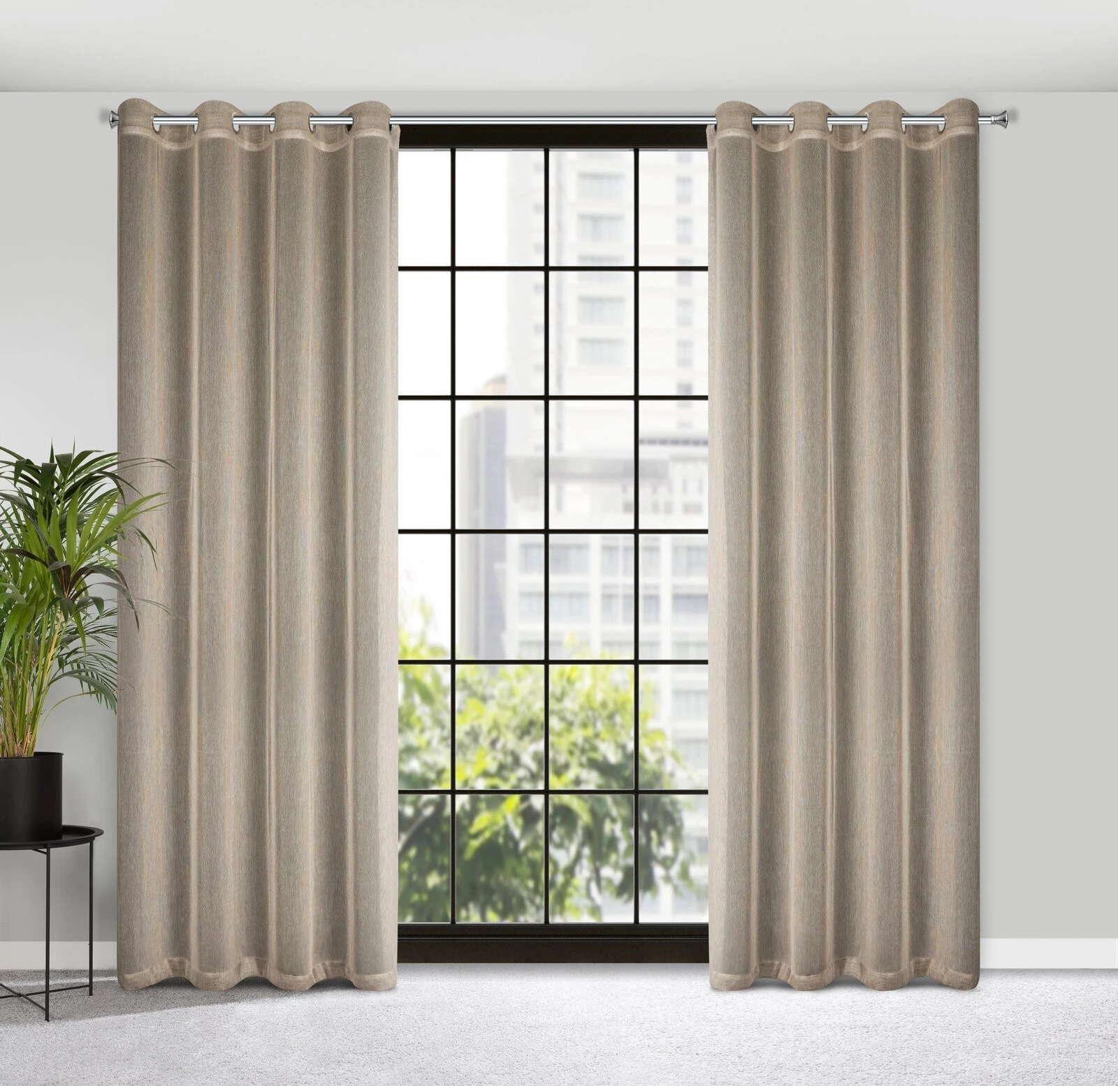 - Zasłona gotowa o strukturze siatki szerokość: 140 cm, długość: 250 cm, kolor: beżowy, Gramatura: 95 GSM, Skład: 100% poliester