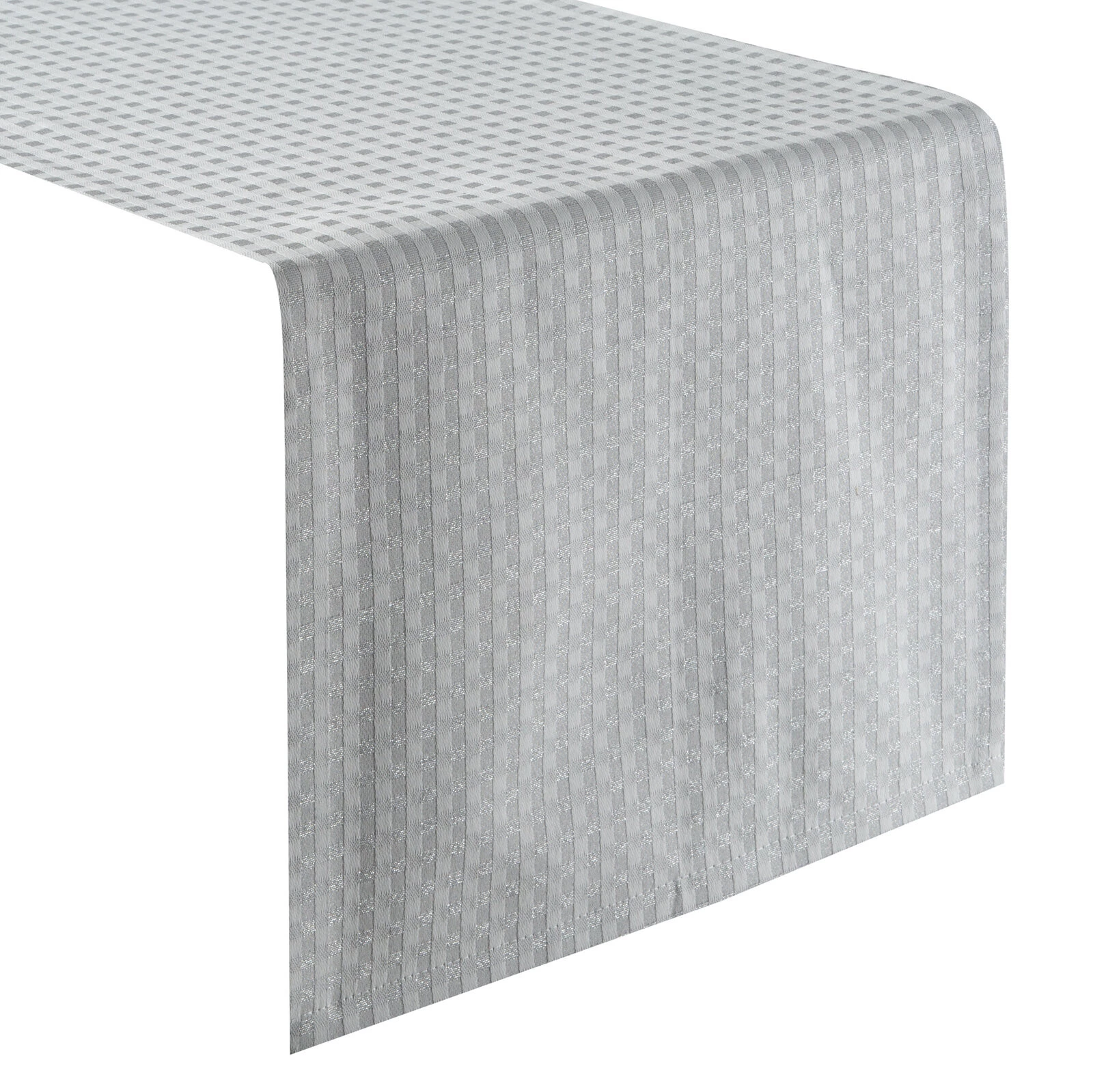 Obrus błyszczący z motywem świątecznym szerokość: 40 cm, długość: 140 cm, kolor: popielaty, Skład: 94% poliester, 6% nić metaliczna