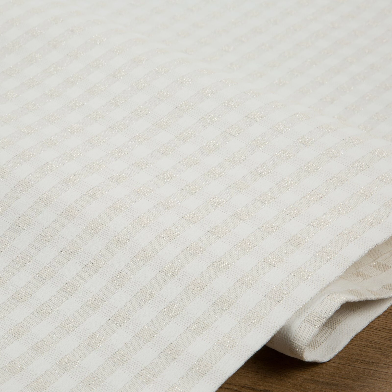 Obrus błyszczący z motywem świątecznym szerokość: 40 cm, długość: 180 cm, kolor: kremowy, Skład: 65% poliester, 27% bawełna, 8% nić metaliczna