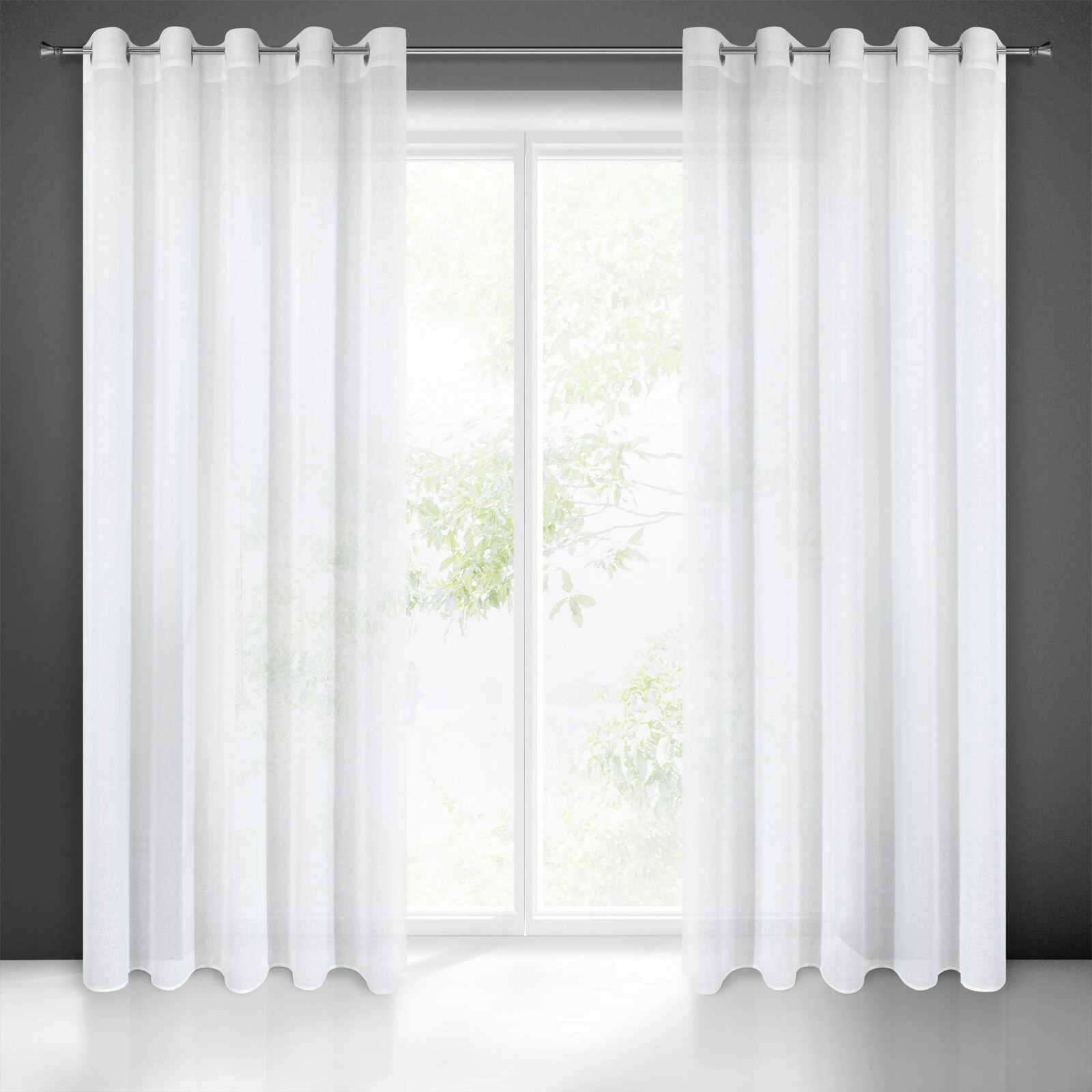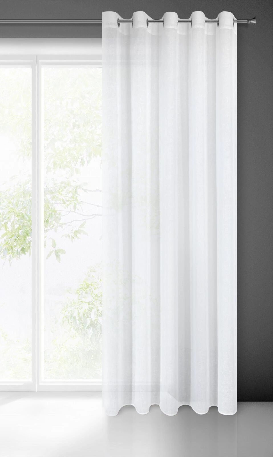 Delikatna firana w pięknym kolorze uszyta z tkaniny o strukturze drobnego deszczyku doskonale przepuszcza światło. Łatwa w prasowaniu i praniu dekoracja. szerokość: 140 cm, długość: 250 cm, kolor: biały, Gramatura: 90 GSM, Skład: 100% poliester