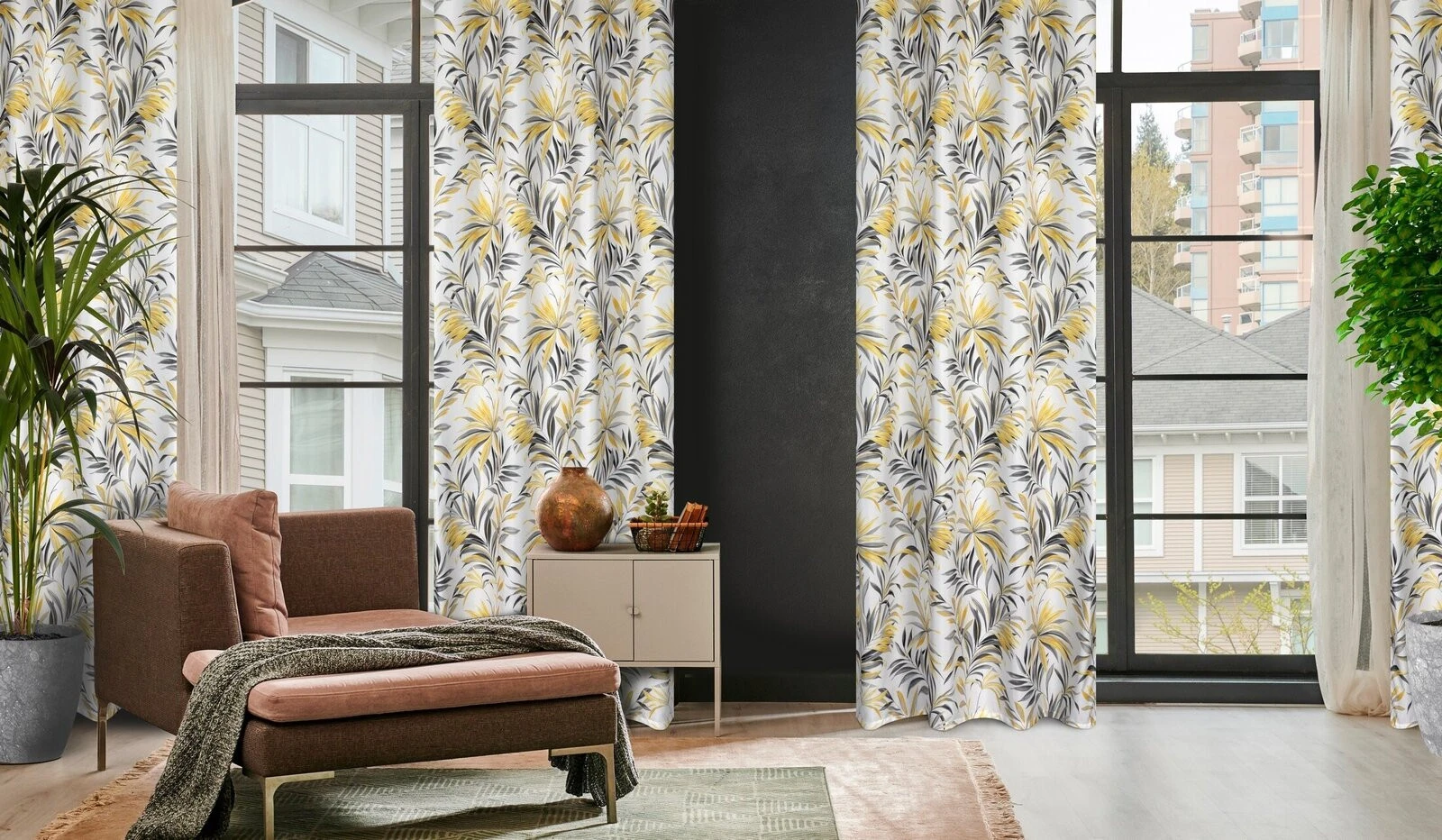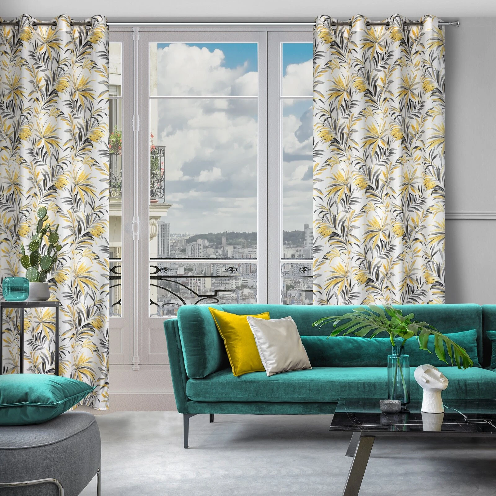 Zasłona z mikrofibry z nadrukiem szerokość: 140 cm, długość: 250 cm, kolor: musztardowy, Gramatura: 75 GSM, Skład: 100% poliester