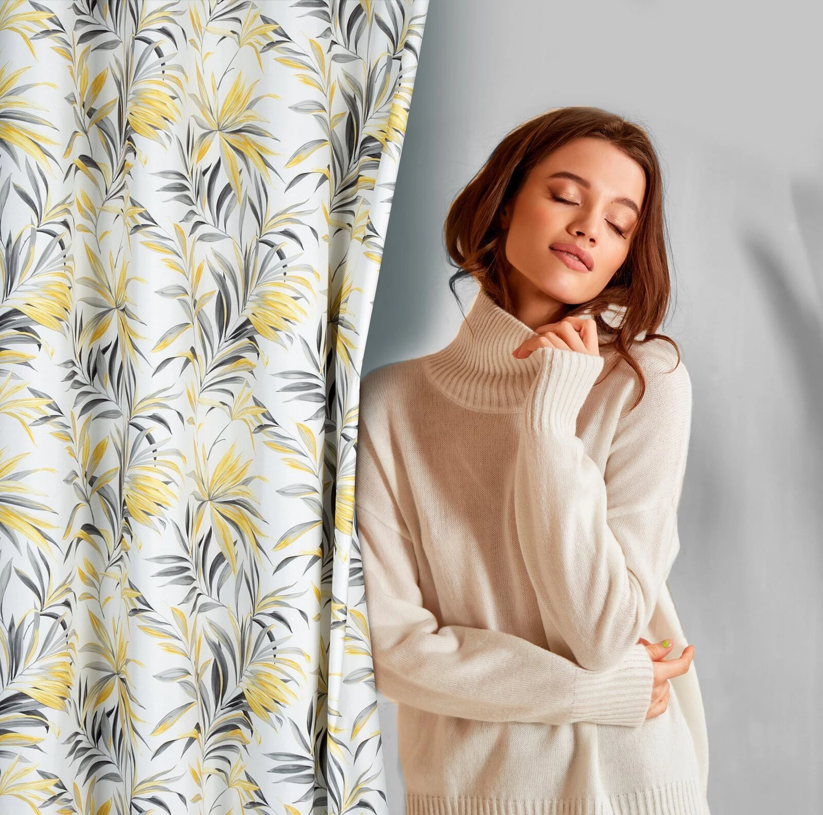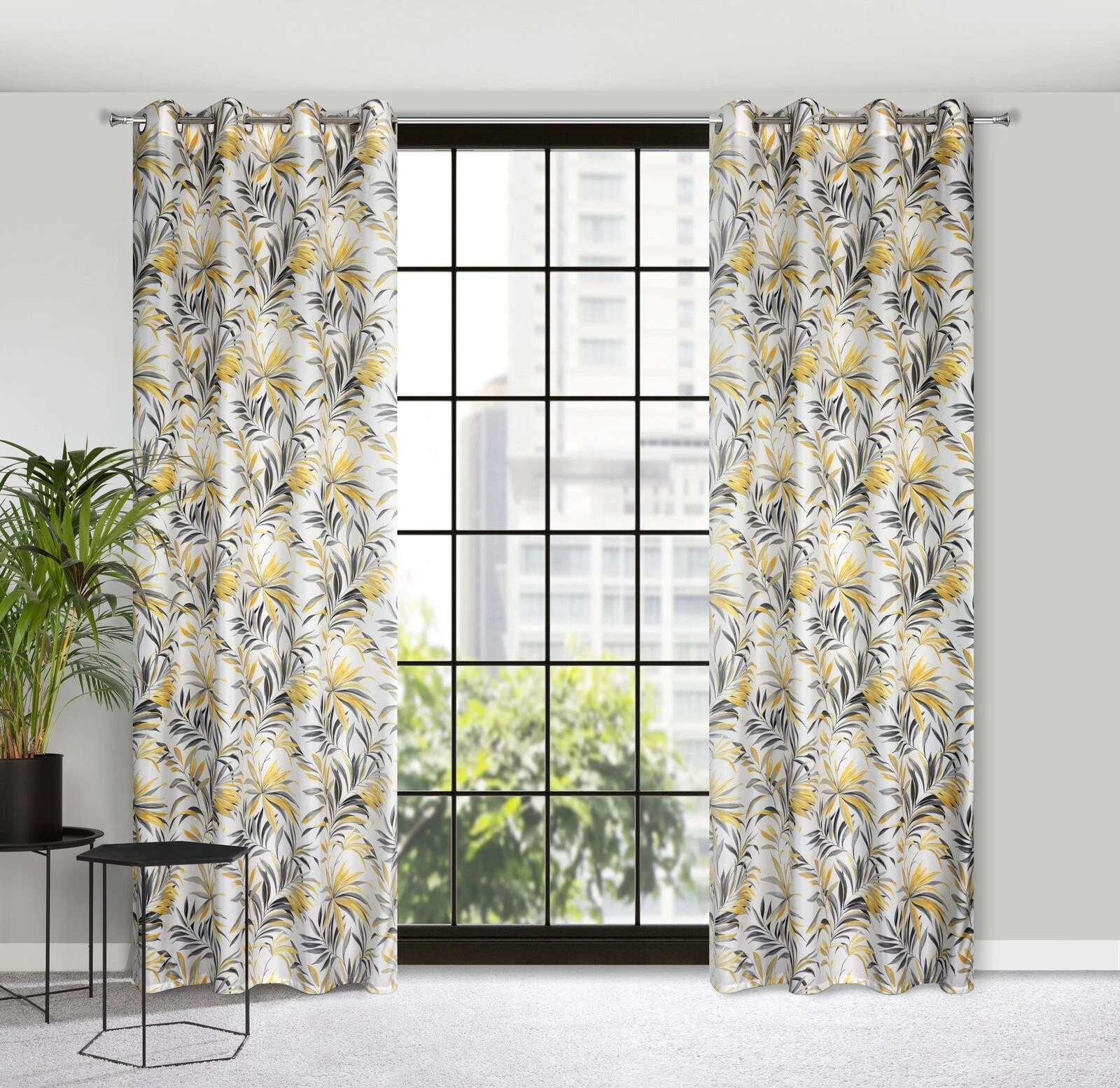 - Zasłona z mikrofibry z nadrukiem szerokość: 140 cm, długość: 250 cm, kolor: musztardowy, Gramatura: 75 GSM, Skład: 100% poliester