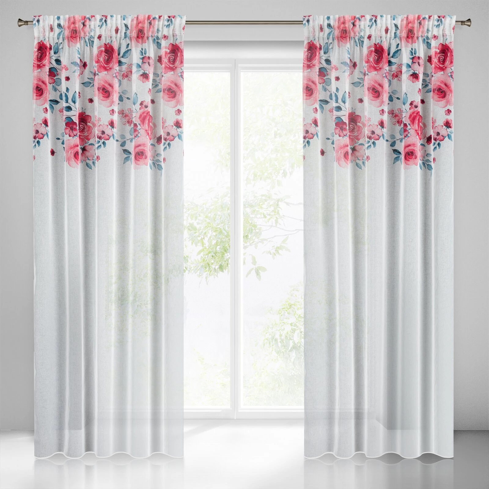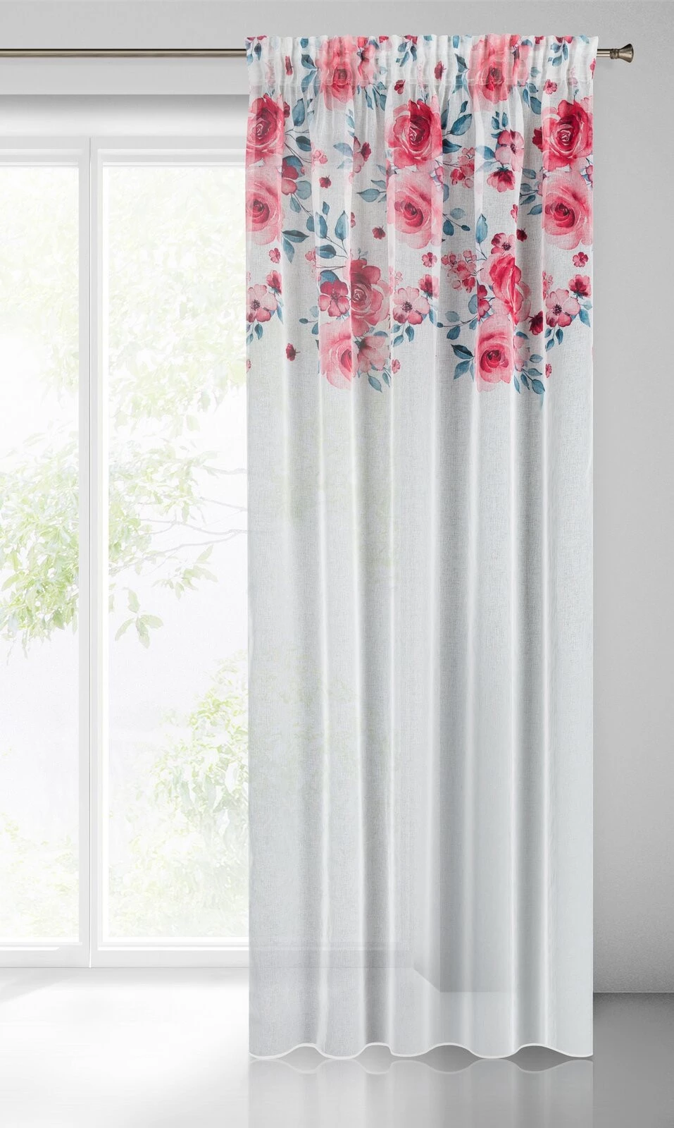 Zasłona gotowa z nadrukiem szerokość: 140 cm, długość: 270 cm, kolor: biały, Gramatura: 75 GSM, Skład: 100% poliester